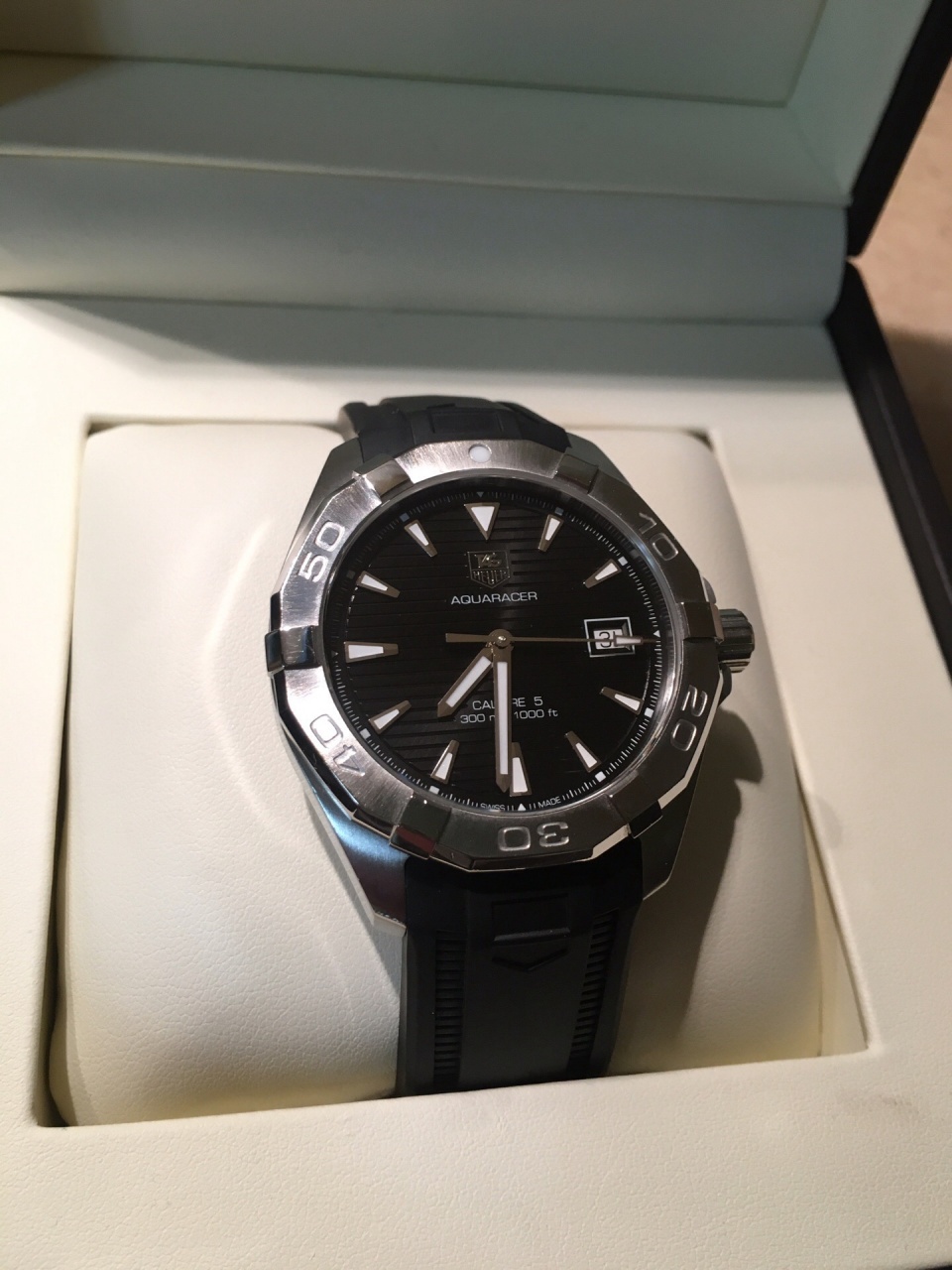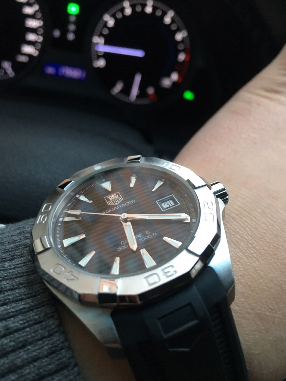 Один из самых удачных акварейсеров на мой взгляд - Tag Heuer WAY2110.FT8021. Строго, сдержанно, универсально.