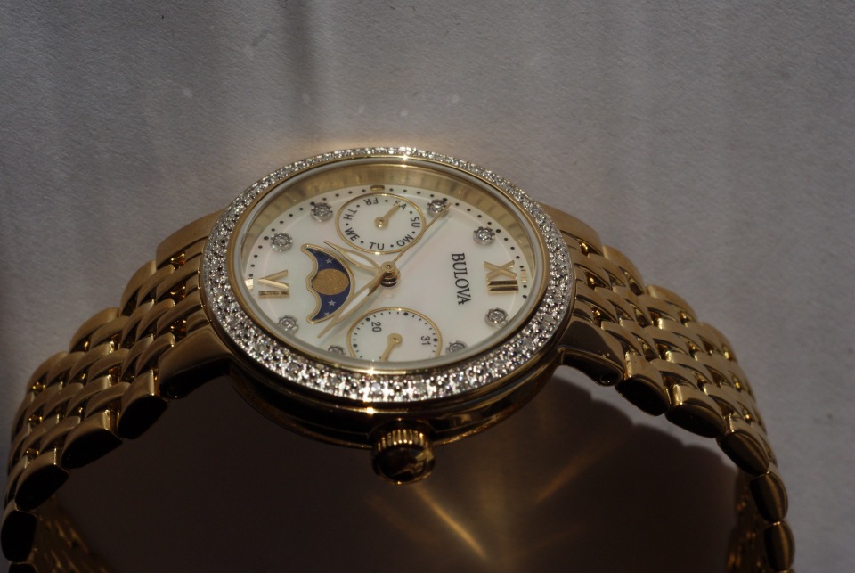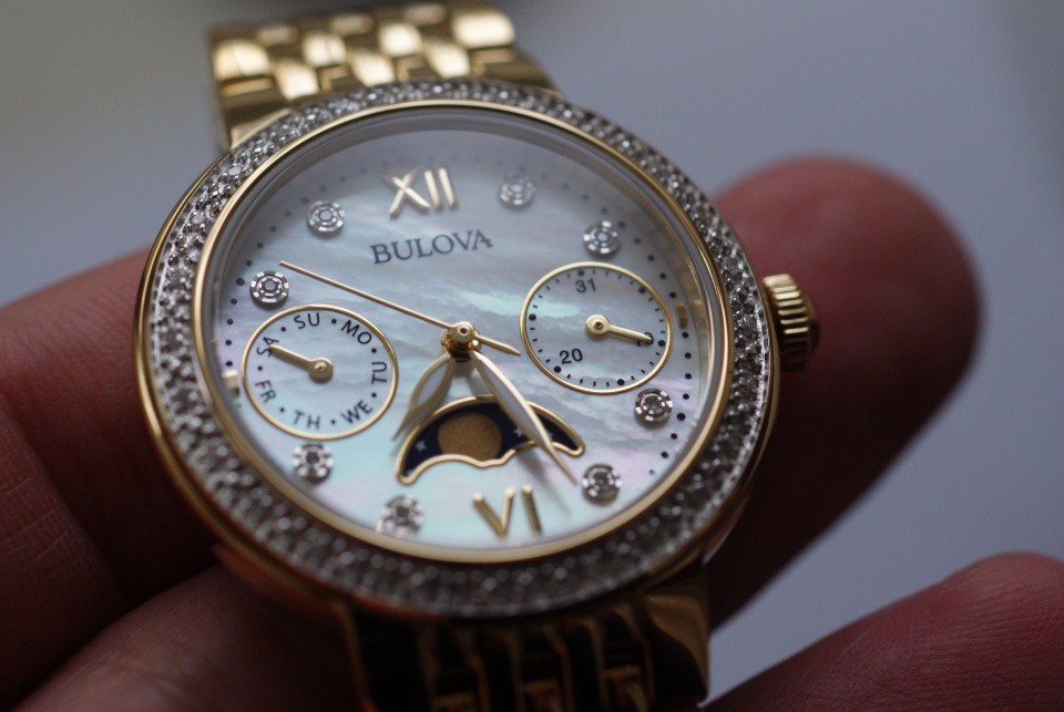 ПОДАРОК ЛЮБИМОЙ. ЖЕНСКИЕ BULOVA БЛЕСТЯЩИЕ С ПЕРЕЛИВАМИ. 34 БРИЛЛИАНТА, ПОЗОЛОТА, ПЕРЛАМУТР