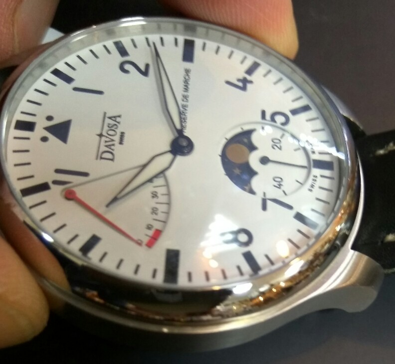 Здравствуйте, в продаже незаурядные часы Davosa с калибром Unitas 6498. Часы ручного завода,с индикацией запаса хода, лунным календарём и несоосной секундной стрелкой. Диаметр 47 мм., водонепроницаемость 5 атм минеральное стекло. Приобретались новыми в коллекцию, ни разу не носились, несколько раз заводились и хранились в коробке. На корпусе очень маленькая точка, ниже безеля, вероятно была сделана ещё в магазине, на фото надеюсь видна.На данный момент нужны денежки.
