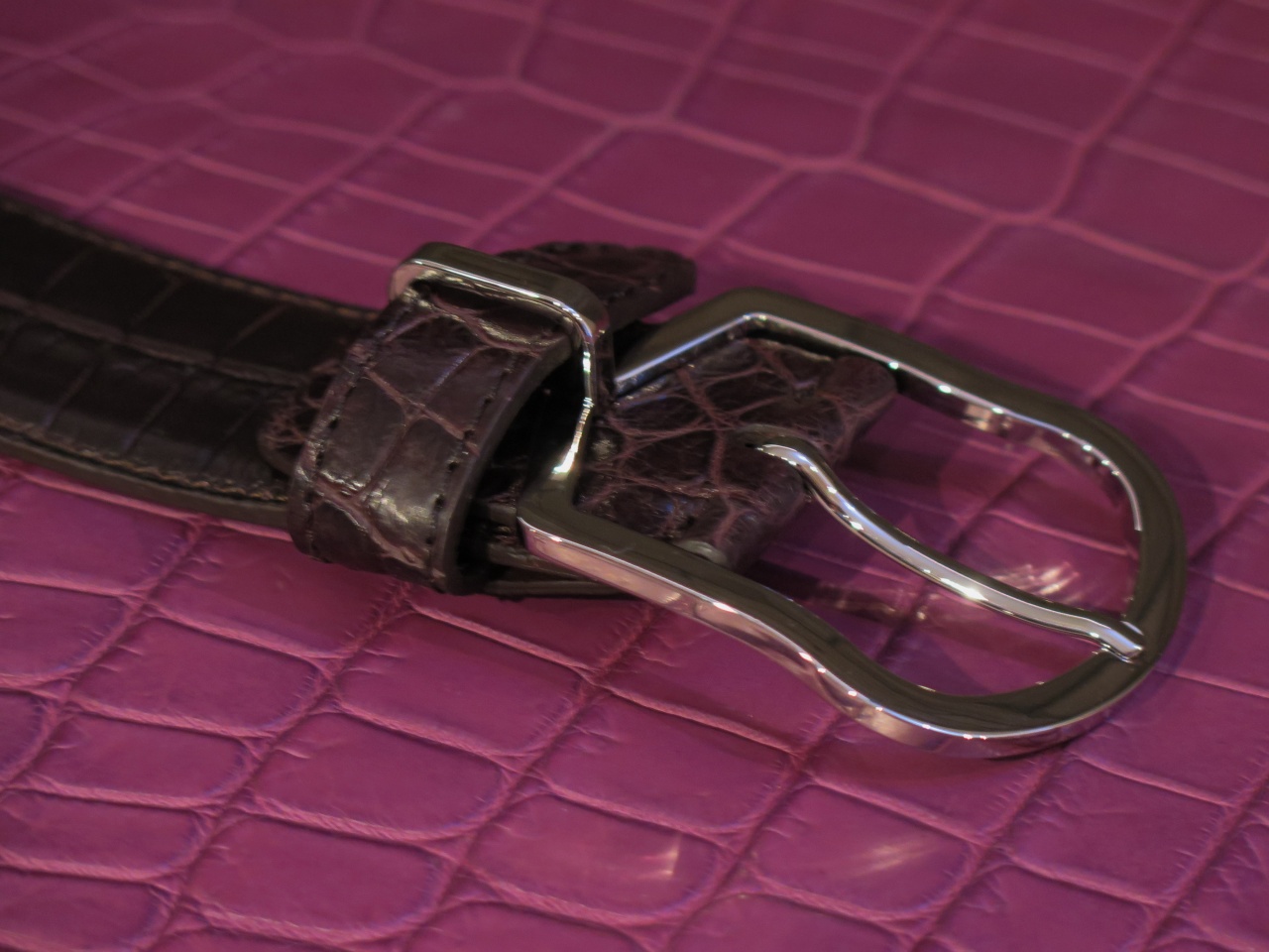 Коричневый мужской ремень ручной работы Brianza, изготовлен из 100% кожи нильского крокодила высочайшего качества выделки.