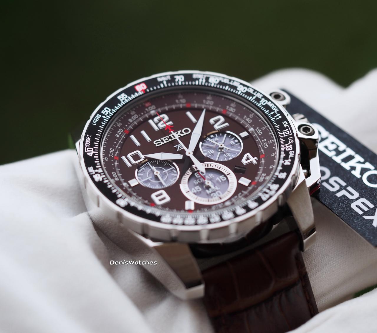 Очень красивый коричневый хронограф в стиле Pilot из спортивной линейки Prospex