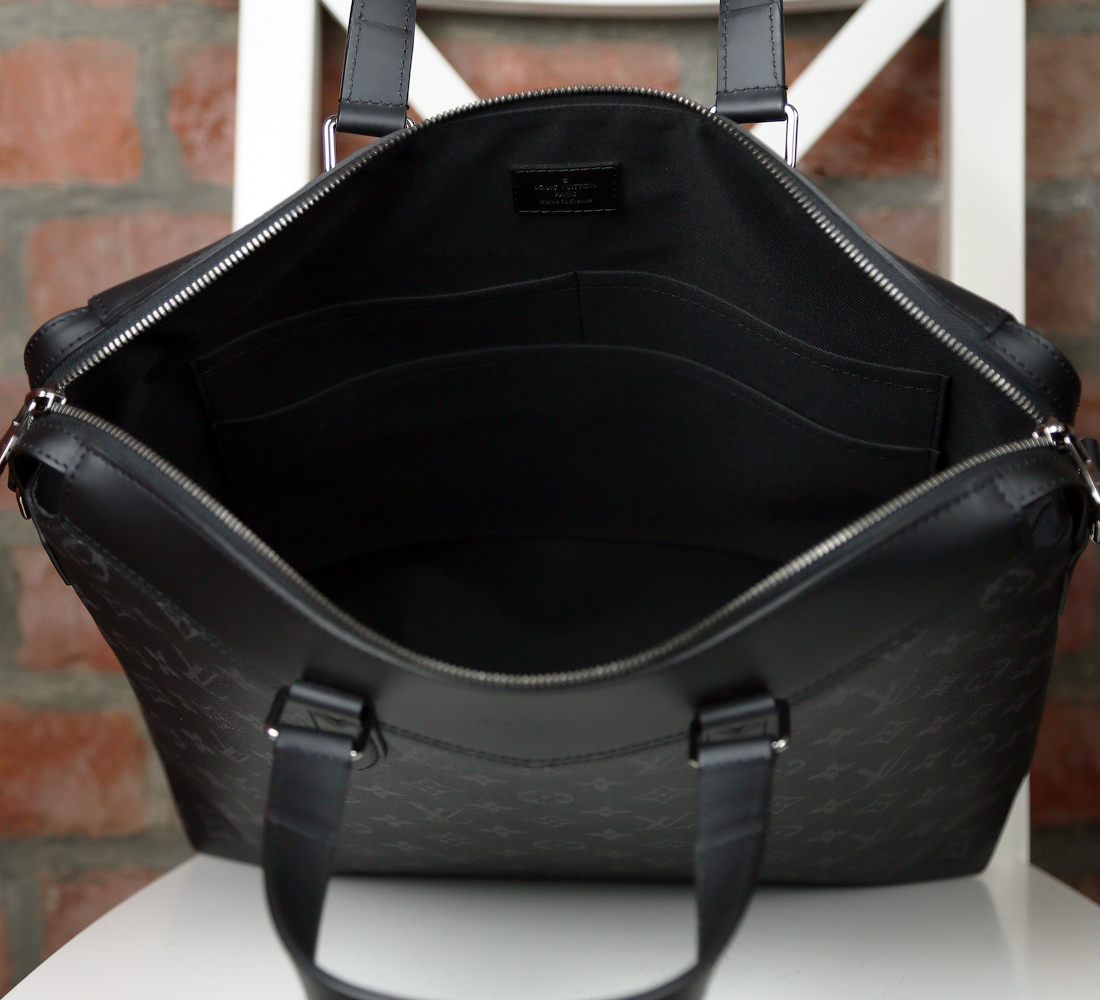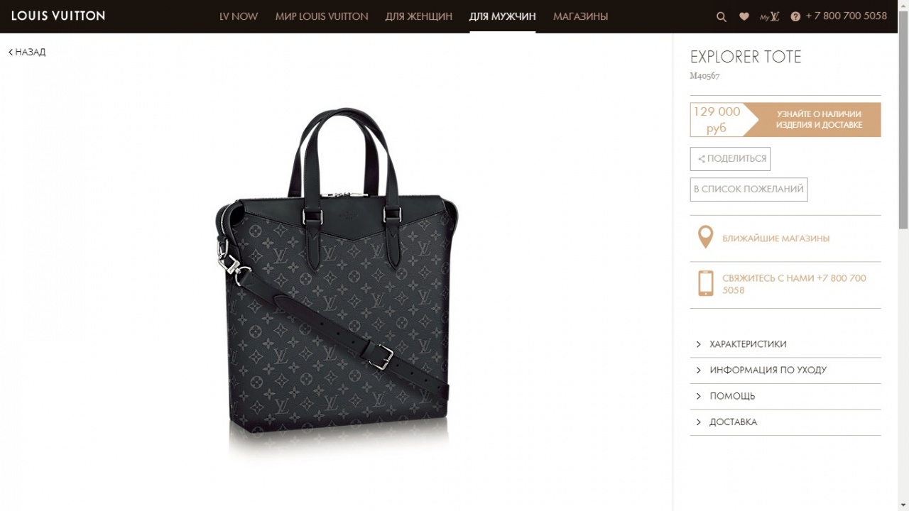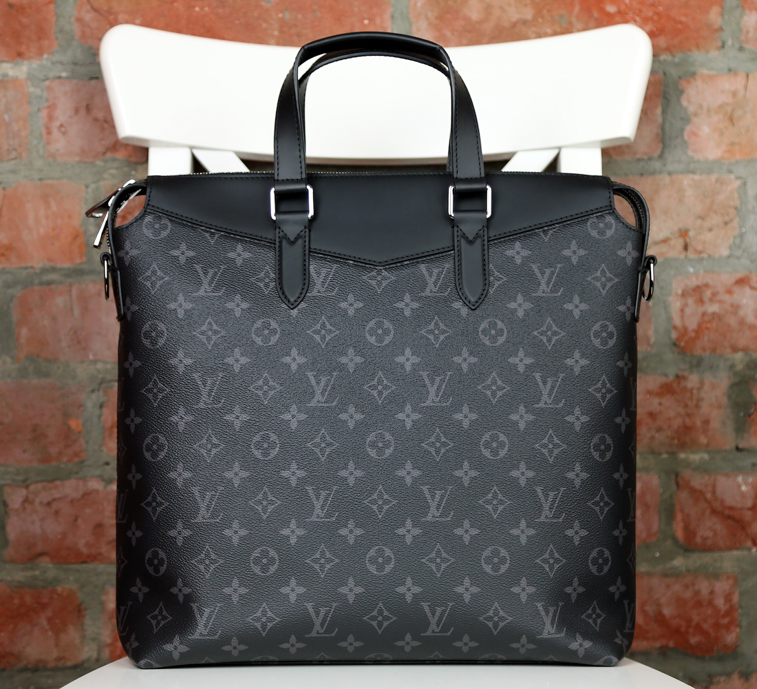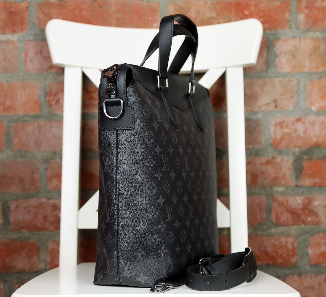 "Современная форма этой сумки понравится деловым людям, которые ценят безупречный стиль. Выполненная из новой мужественной канвы Monogram Eclipse модель Explorer Tote отличается отделкой из мягкой кожи и застежкой-молнией. Сумка идеально завершит сдержанный, но определенно стильный образ."