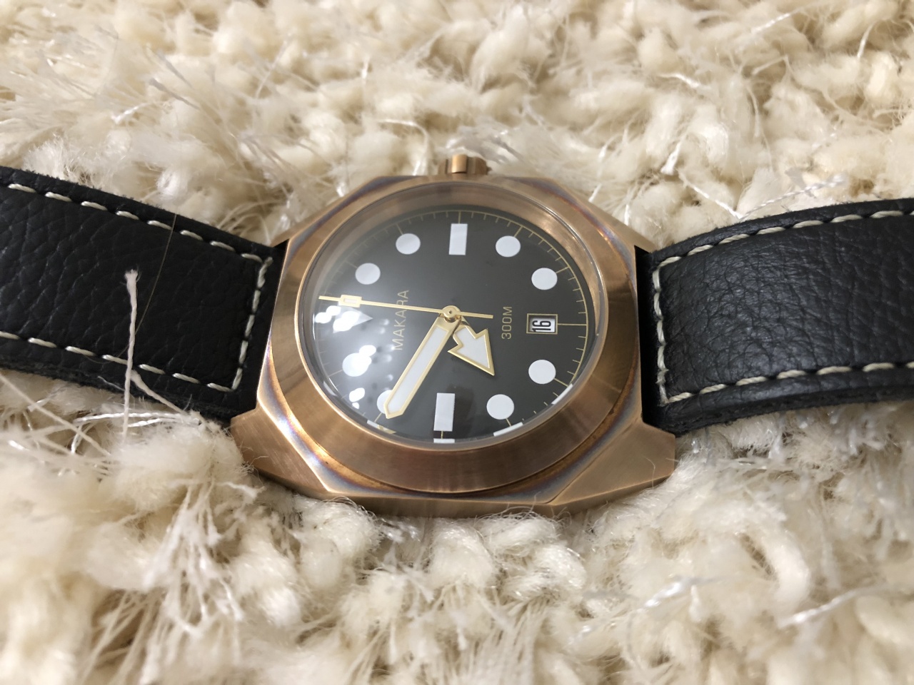 Ремни: Черный натуральная кожа + каучук в цвет циферблата, оба ремня родные, каучук новый, не одевался, родная бронзовая бакля с логотипом Makara.Часы в отличнейшем состоянии ! Воды не видели, царапин нет, вмятин нет , без нЮансов , не вскрывались, не ремонтировались . Не дайвер а сказка.