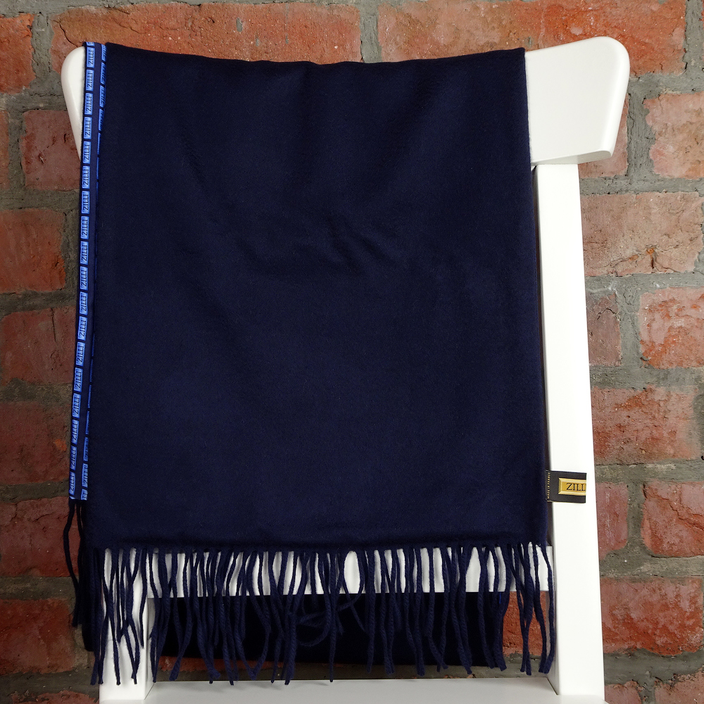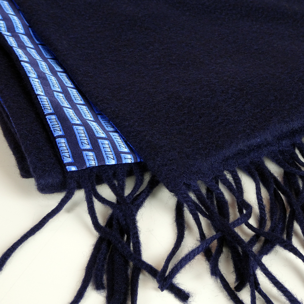 Материал одной стороны: 100% чистейший кашемир без каких-либо примесей, темно-синего цвета.