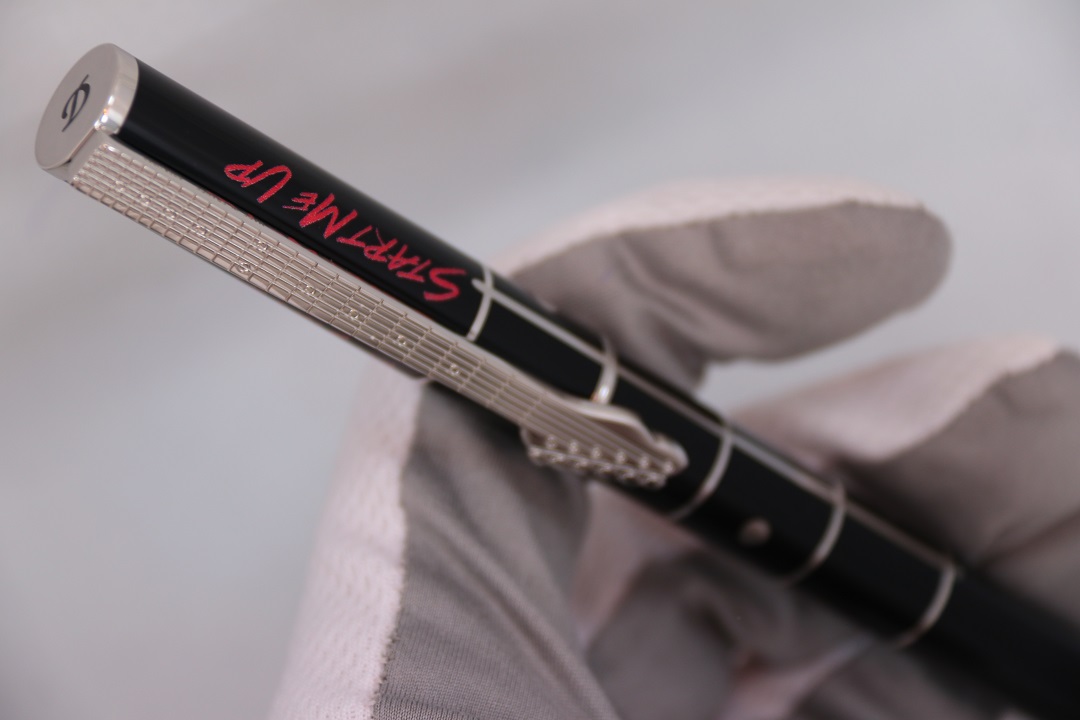 Дом S.T. Dupont отдает дань группе The Rolling Stones, представляя лимитированную серию ― настоящую 'симфонию' из черного лака и палладия, созданную ювелирами и мастерами-лакировщиками. Источником вдохновения для коллекции послужили тексты песен, особенно характерных для творчества The Rolling Stones. Зажим ручки Néo-Classique украшен утонченной гравировкой в виде знаменитой пятиструнной гитары Кита Ричардса, а на колпачке увековечены слова таких хитов, как 'Start me up', 'It's only Rock 'n' Roll (but I like it)', 'You got me rocking' или 'All down the line'.