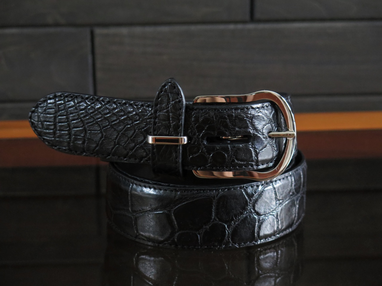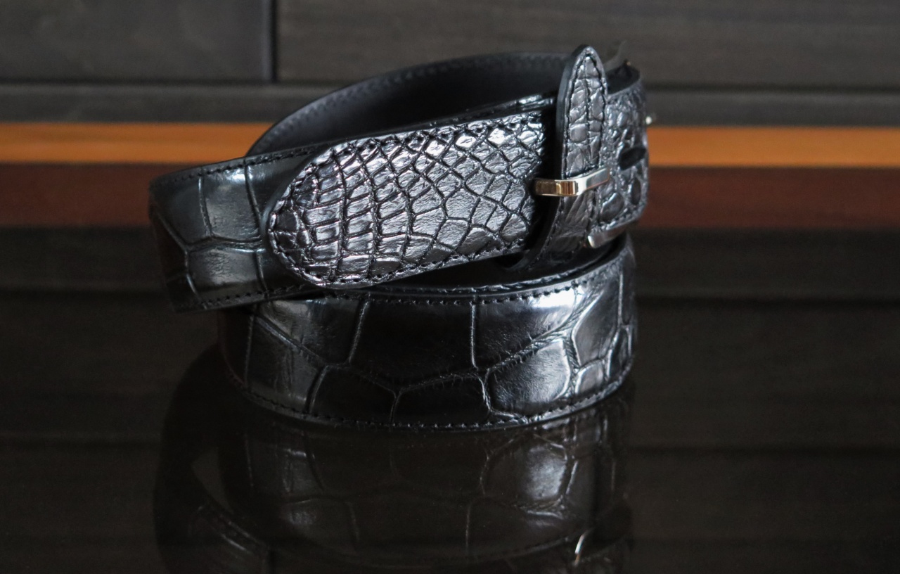 Черный мужской ремень ручной работы Brianza, изготовлен из 100% кожи нильского крокодила высочайшего качества выделки.