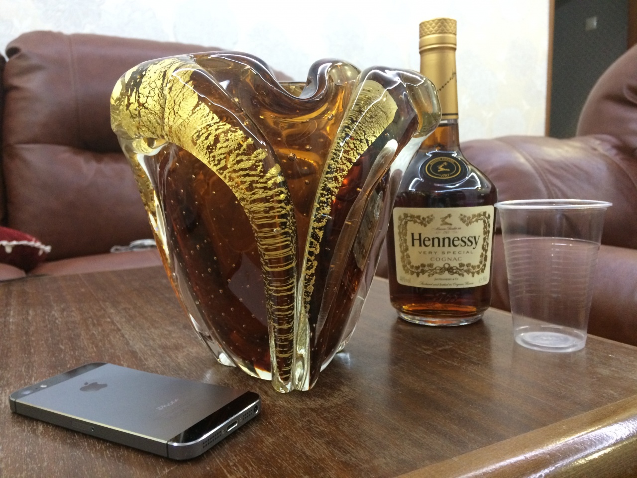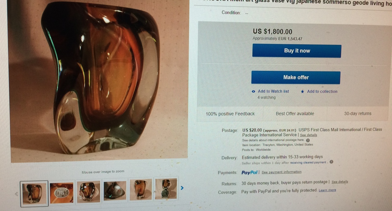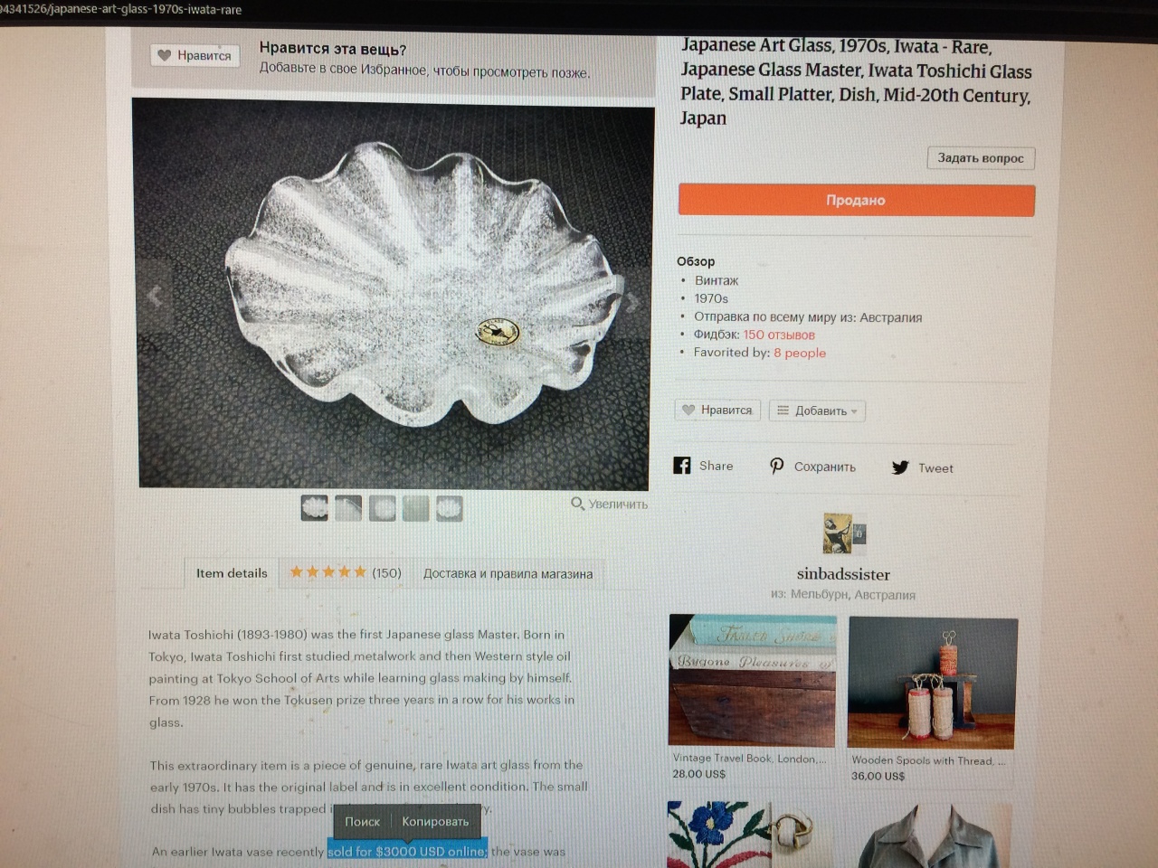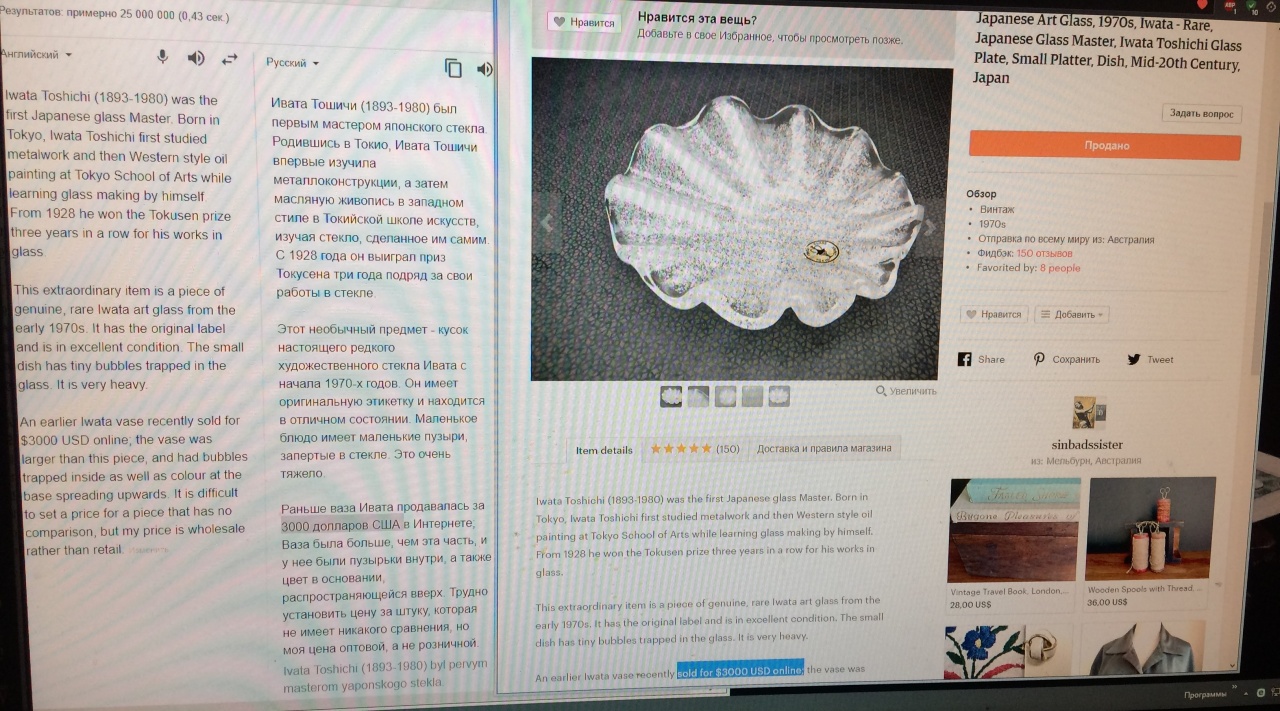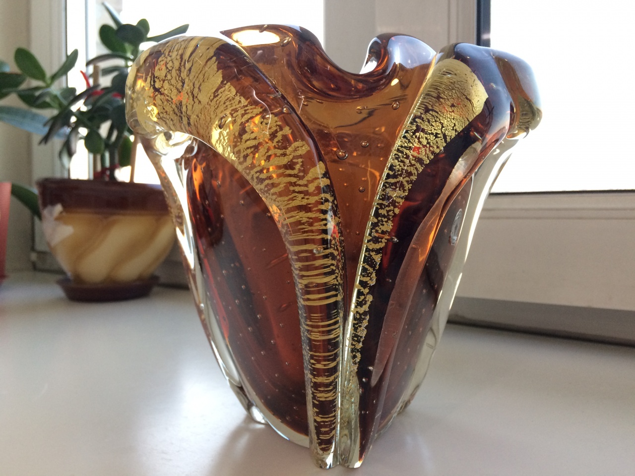 Старинная шикарная ваза Bubbles Vase by Iwata Toshichi, Tokyo Japan стекло/золото