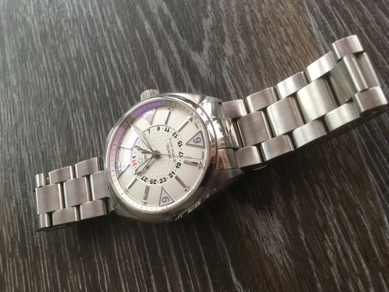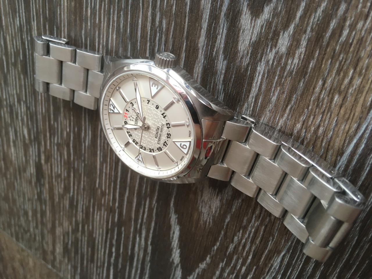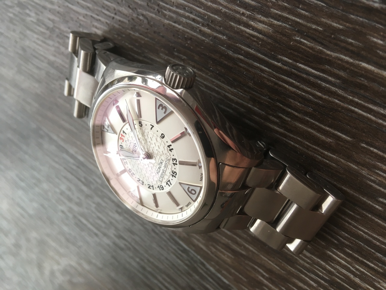 Замечательные швейцарские часы Eterna KonTiki - 1592.41.11.0217 на мой взгляд одна из самых интересных моделей бренда! В отличном техническом состоянии. На корпусе есть естественные следы эксплуатации, ничего критичного, в глаза не бросается. Браслет в идеале, доп.звенья в наличии. Как говорится одел и пошел, не требуют никаких вложений. По качеству исполнения с уверенностью могу сказать что на одном уровне с Omega! Циферблат загляденье, просто залипаешь!)