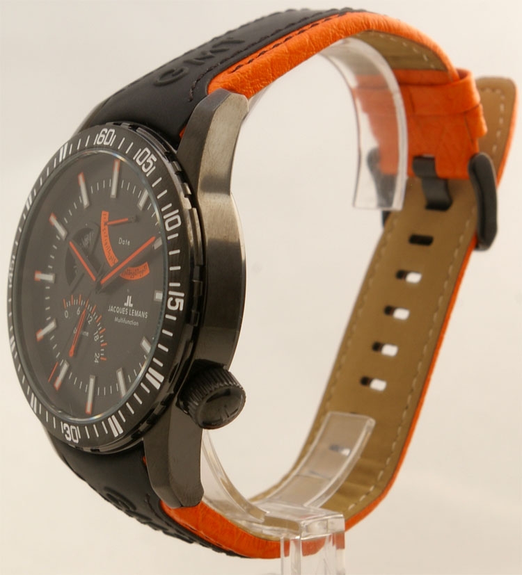 | немецкие часы, оранжевые стрелки, черный матовый циферблат |