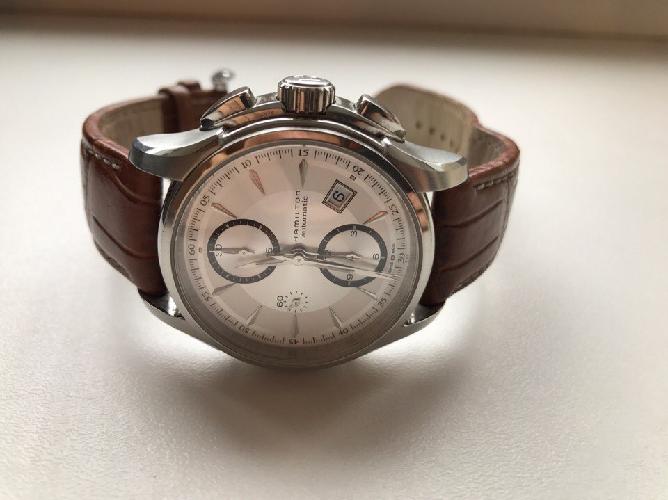 При создании нового Hamilton Jazzmaster Auto Chrono использовались самые последние инновации часового искусства. В новом хронографе установлен механизм Н-21 с запасом хода на 60 часов (модифицированный калибр ETA Valjoux 7750). Современная стилистика модели Jazzmaster Auto Chrono позволяет часам гармонично вписываться в любой стиль и ритм жизни. Водонепроницаемость модели – 100 м.