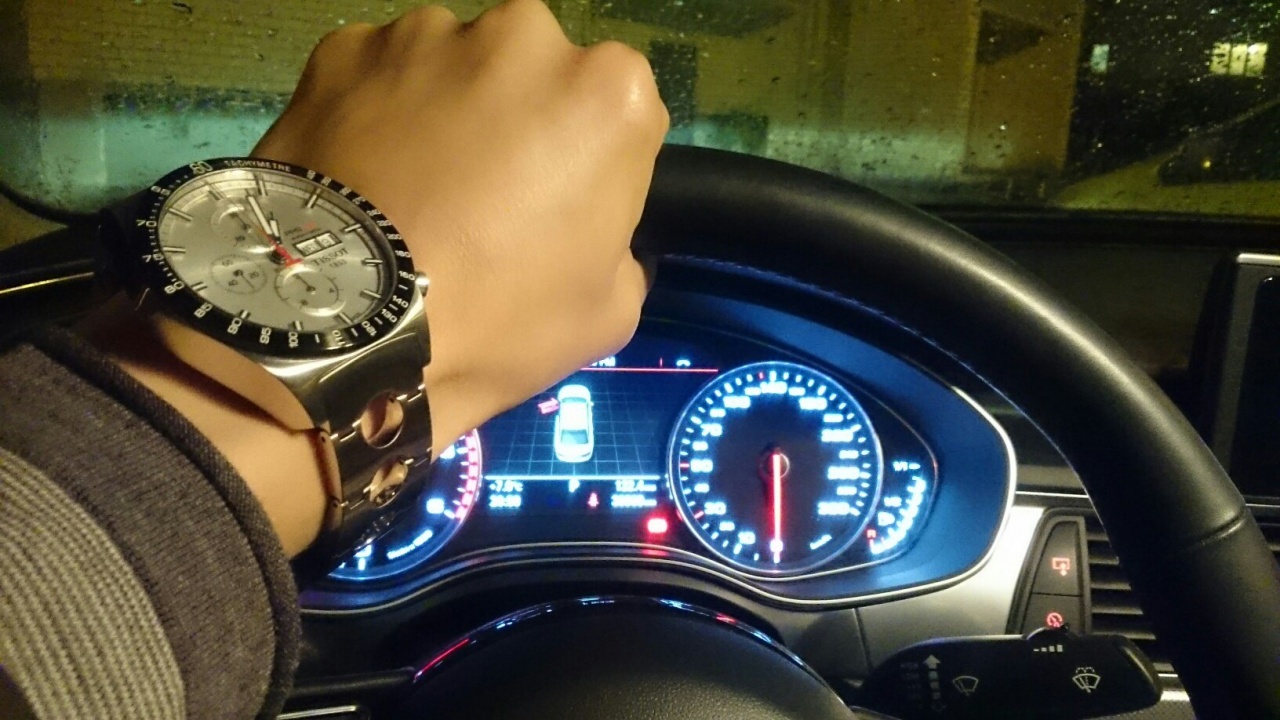 Отличная читаемость массивных белых стрелок на фоне циферблата, гармоничное обрамление синего цифера черным безелем и белым накладным кольцом с метками по периметру - если честно, мне дизайн своими основными мотивами за рамками мотоциклетно-рейсерской тематики серии PRS516, во многом напоминает вдвое более дорогие и очень красивые