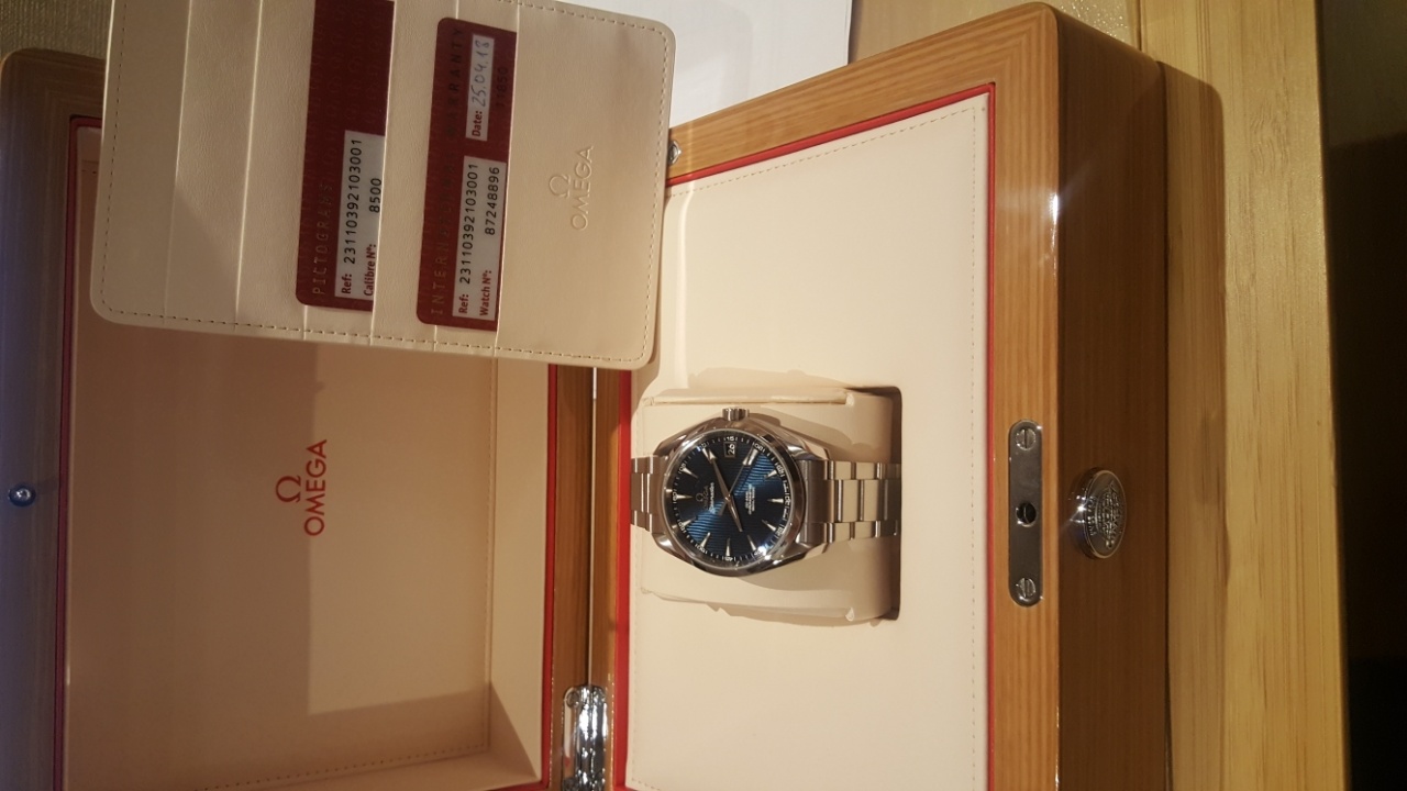Продаю абсолютно новые (не ношены , с пленками) часы OMEGA CO-AXIAL AQUA TERRA 150 М (ref 231.10.39.21.03.001), хронометр (точность хода +2 сек/сутки). Часы куплены в бутике омега ГУМ (Москва) 25 апреля 2018 г., подарены без согласования, вернуть в бутик не могу-это технически сложный товар, продаю за ненадобностью! Часы на гарантии 4 года. Перекупов прошу не беспокоить меня, ищу покупателя, который покупает часы для себя. Готов к любым осмотрам так как часы новые .