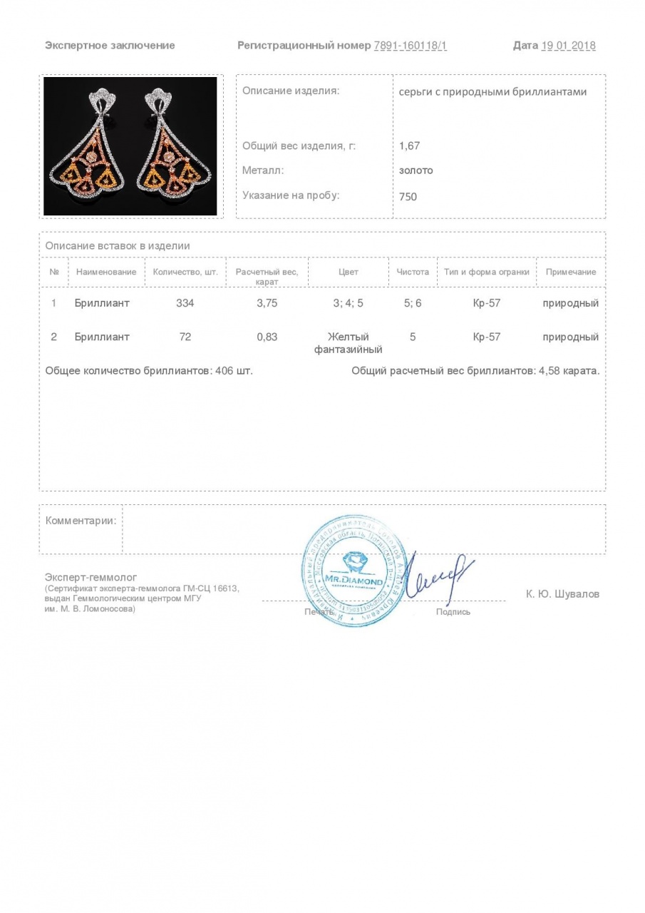 Фееричные золотые серьги с бриллиантами 4.58ct