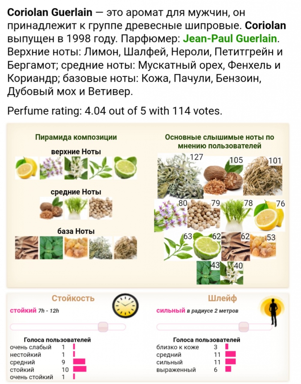" Аромат аристократический. Величие и спокойствие. В офис на каждый день, так как более корректного к окружающим аромата пока не встречал. Никого не напрягает, нравится всем. Но в то же время обладает яркой индивидуальностью, хотя перепевки есть со многими"