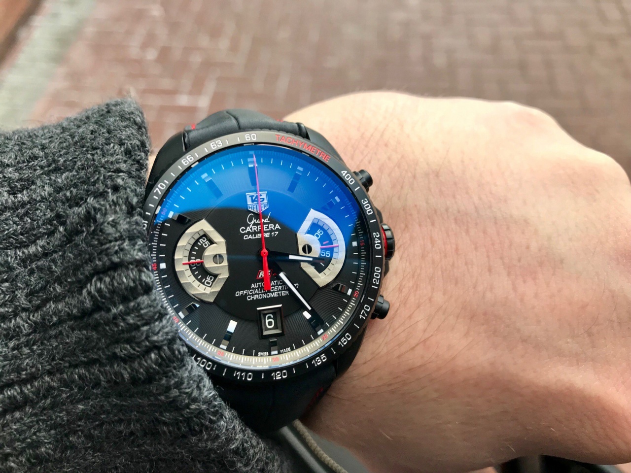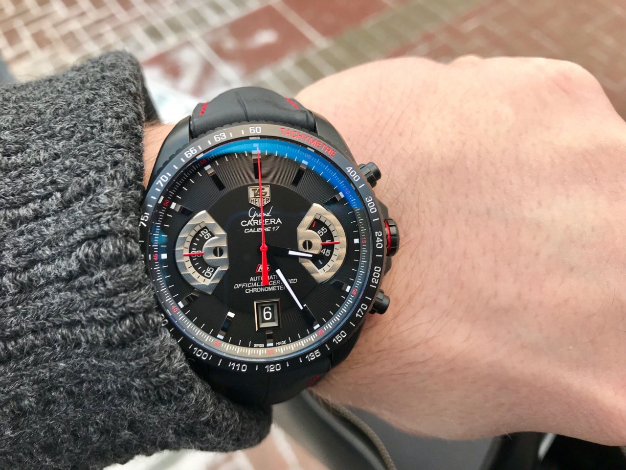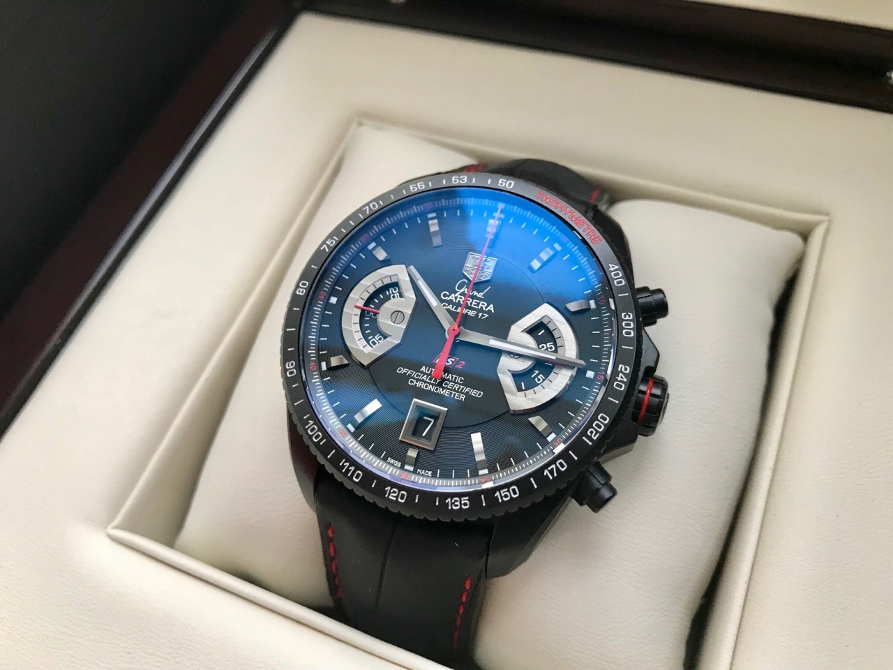 Самая успешная и востребованная модель флагманской Таговской линейки Гранд Каррера. Чёрный титановый корпус, уникальные дисковые индикаторы, тахиметрическая шкала, крокодиловый ремень с красной прострочкой в тон надписей и секундной стрелки - в дизайне всё идеально, эксклюзивно, узнаваемо, супер-спортивно! Вау-эффект гарантирован и Вам, и окружающим
