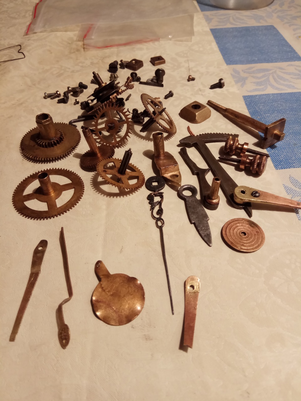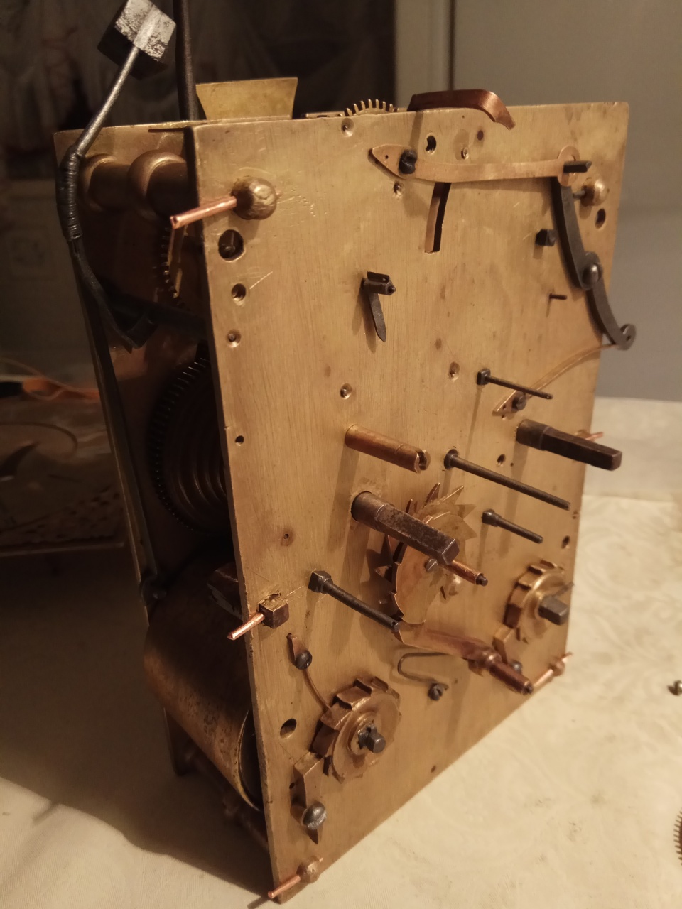 Пролежали более 50 лет в сарае часы William Dee London. Захотелось наконец их реставрировать. После промывки и чистки выяснилось, что часть деталей механизма между платиной и циферблатом не комплектные. Они пролежали россыпью. Возможно у кого нибудь есть фото без циферблата или ссылка на литературу, то буду признателен.