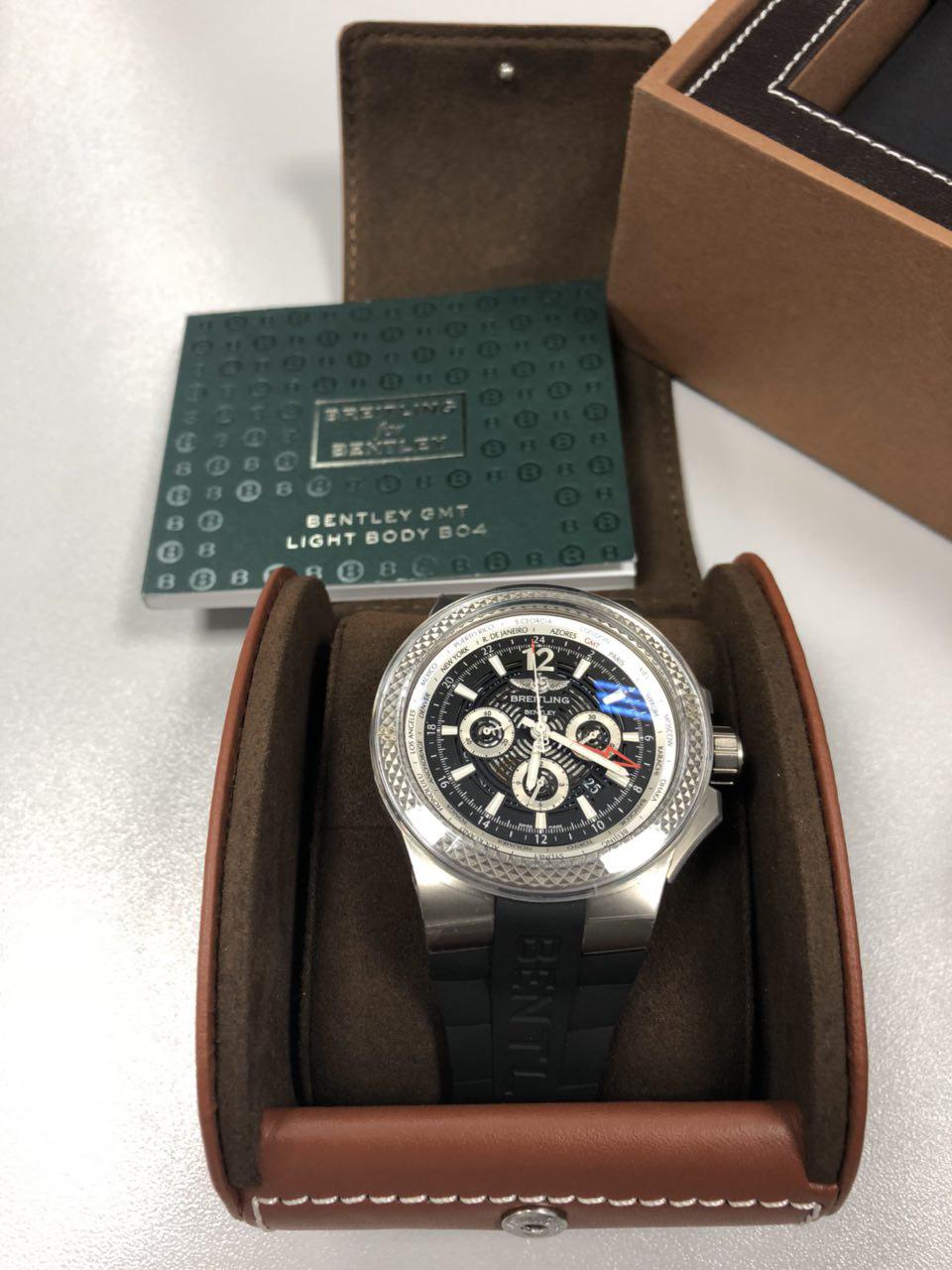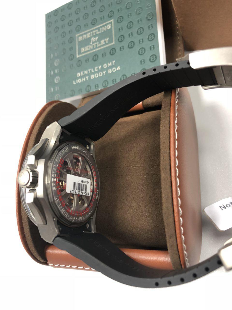 В дизайне и механизме мужских часов от Breitling модельного ряда Breitling for Bentley соблюдены все современные тенденции часового дела. Эта удивительная смесь порождает новый стиль часов, основанный на вековых традициях, получивших современную интерпретацию. Индикатор расположенный на циферблате часов, позволяет отображать время одновременно для двух разных часовых поясов. Часы модели EB043210/BD23/222S/E20DSA.2 выпущены ограниченным количеством экземпляров. Изготовленный из титана корпус часов, имеет размер 48,7 мм. Механизм с автоматическим подзаводом работает от амплитуды движения руки. Часы предназначены для того, чтобы в них плавали и имеют водонепроницаемость 100 м. Циферблат закрыт прозрачным антибликовым стеклом из сапфирового хрусталя высокой прочности, благодаря чему обеспечивается максимальная защита от сколов и механических повреждений. Часы укомплектованы каучуковым ремешком с раскладывающейся застежкой из титана, превосходно дополняющим эксклюзивный образ модели