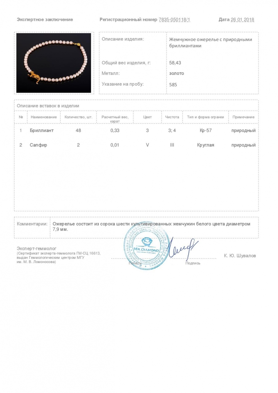 Жемчужное ожерелье с сапфирами и бриллиантами