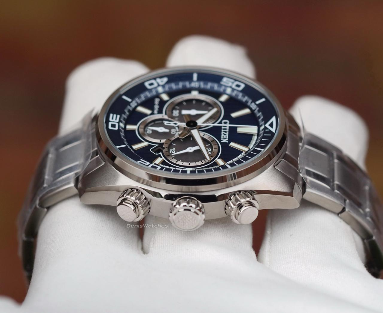 Новый спортивный хронограф от Citizen с красивым синим циферблатом в полоску!