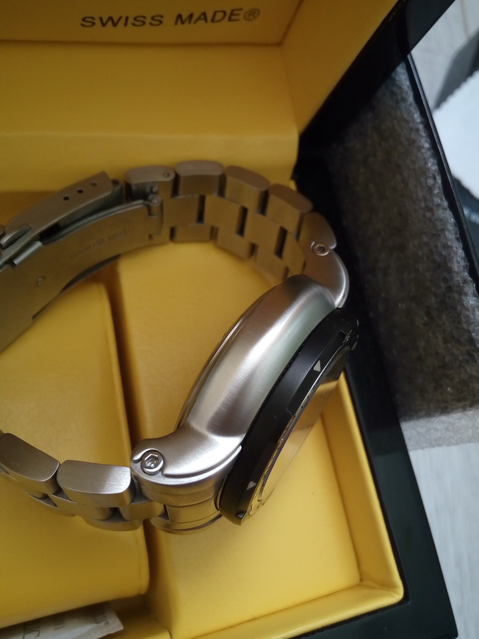 В продаже 1000м сертифицированный дайвер от производителя самых глубоководных часов в мире CX SWISS MILITARY с желтым лицом. Состояние очень хорошее, следы носки минимальны. Второе поколение: отличается от первого более сильным люмом, люмом на безеле, иным оформлением цифера, более толстыми стрелками и ухами на винтах. Все головки завинчиваются. Коробки, бумажки в наличии.