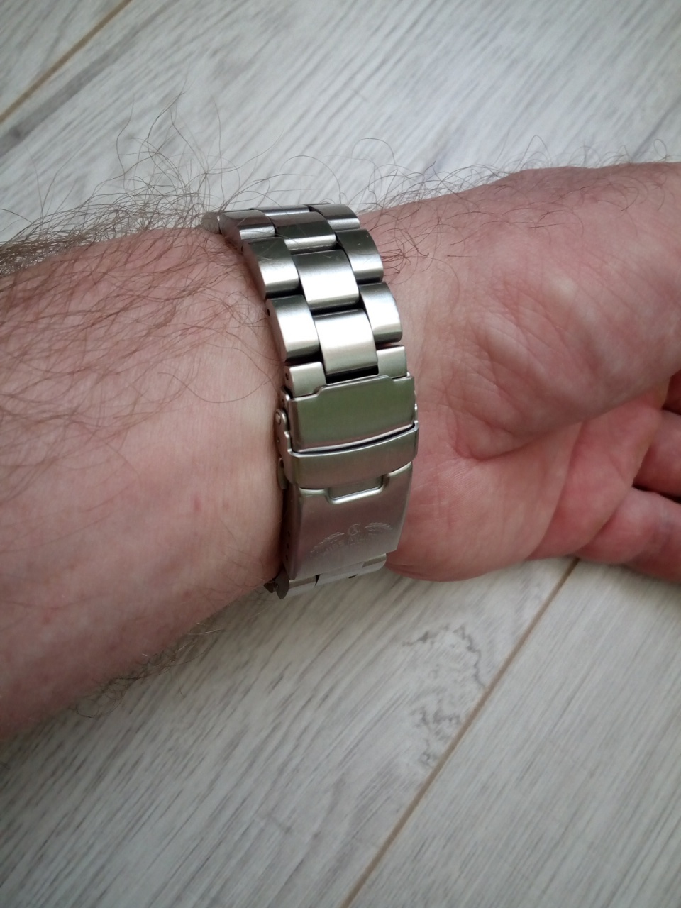 Браслет на 18 см и одно доп. звено (есть дайверский расширитель на браслете)