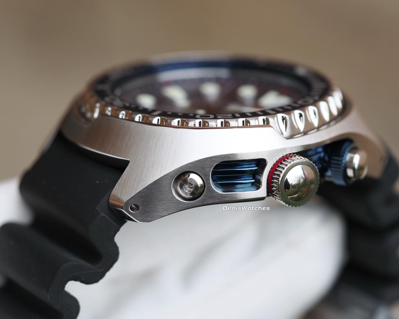 Стальной корпус с мощным литым защитным ТУНА-кожухом, как на внутрияпонских дайверах серии MarineMaster, все выполнено в практичном сатине