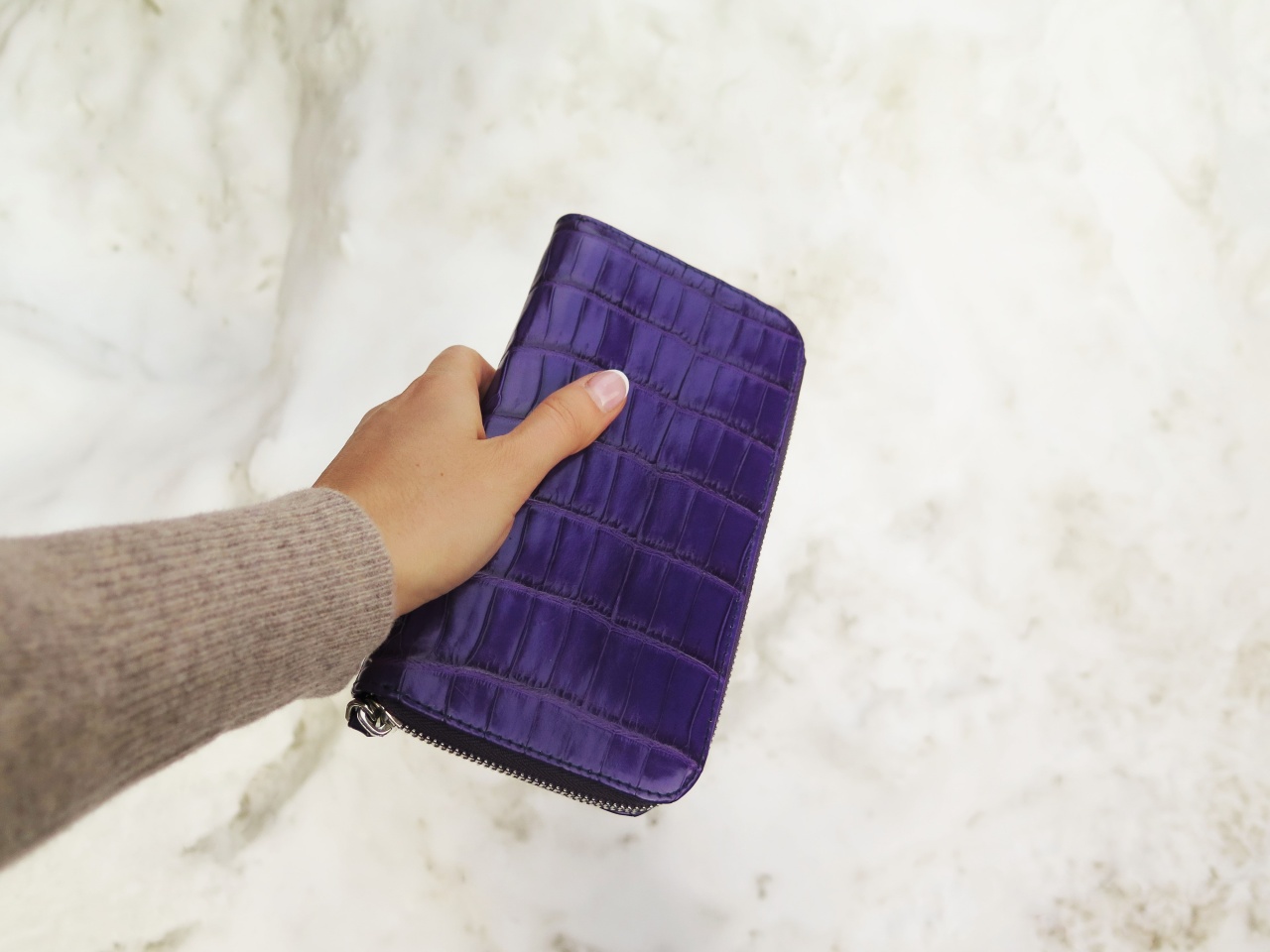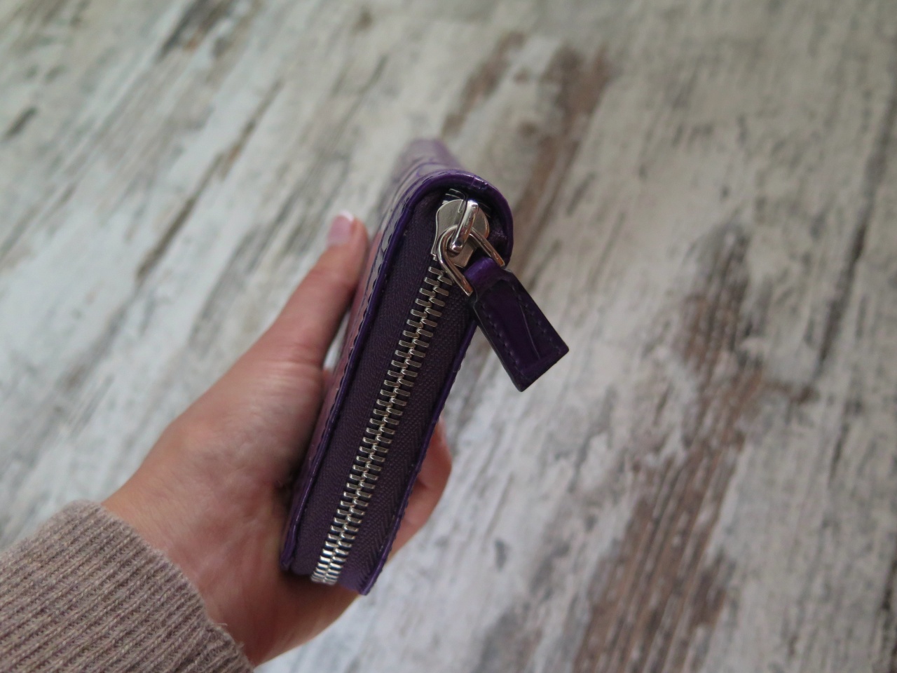 Клатч застёгивается на металлическую молнию производства швейцарской марки RiRi, с бегунком из кожи крокодила.