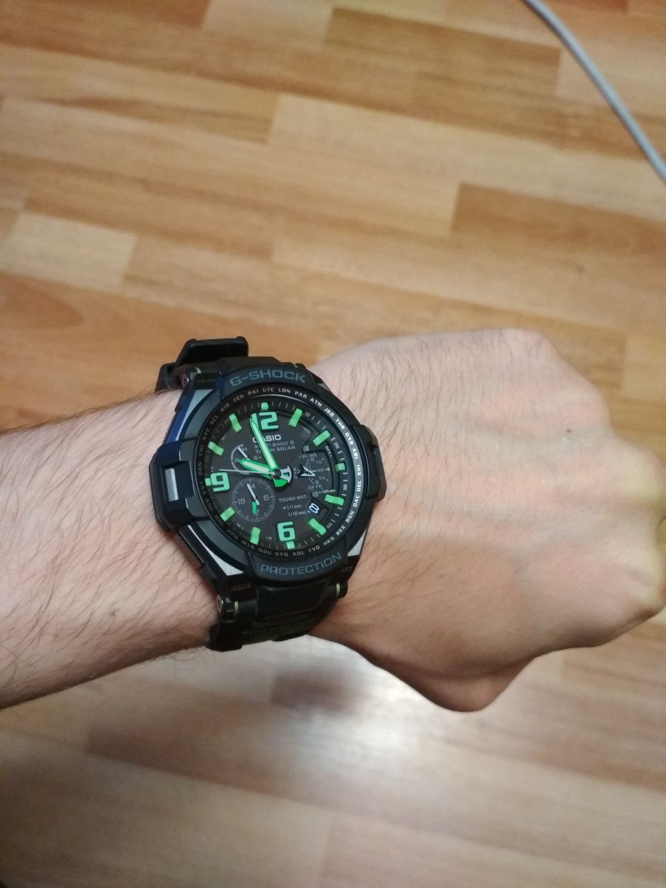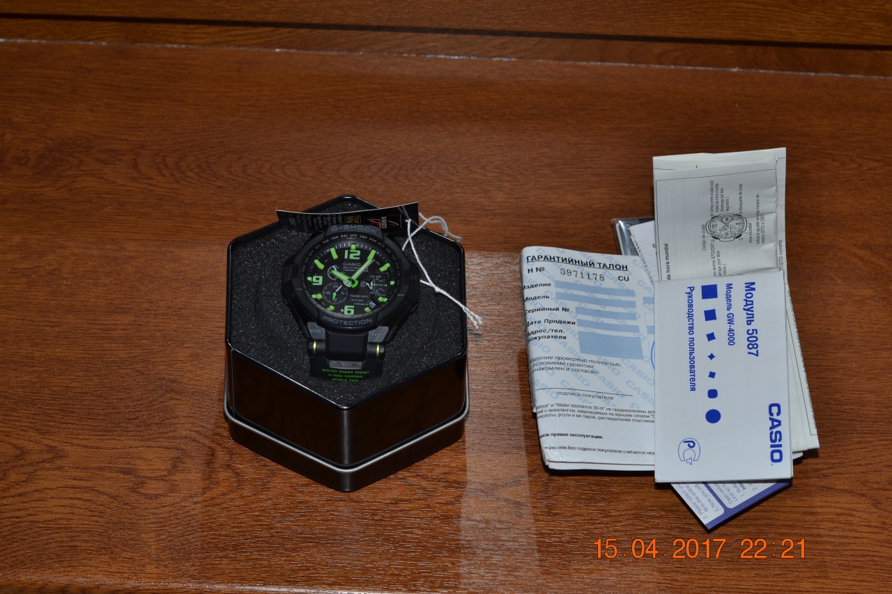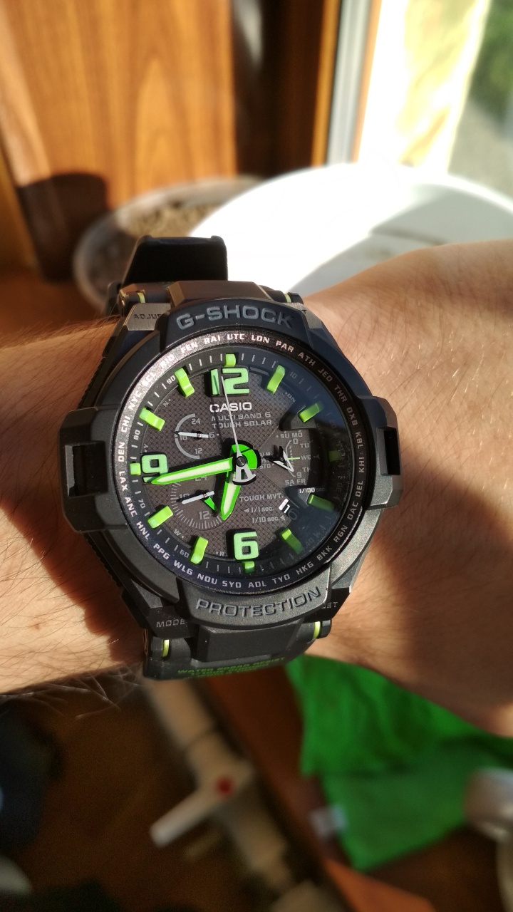 Продаю одни из интереснейших и бронебойных шоков на солнечной батарее, с зеленым цветом меток циферблата и стрелок, при этом сам циферблат больше тянет к графитовому. Часы в идеальном состоянии, куплены в 2016 году состояние поставил АА, хотя тянет ближе к ААА, так как практически не использовались, полный комплект, коробка+макулатура. Давно искал эту модель, но, к сожалению, механика вытеснила с руки кварц.