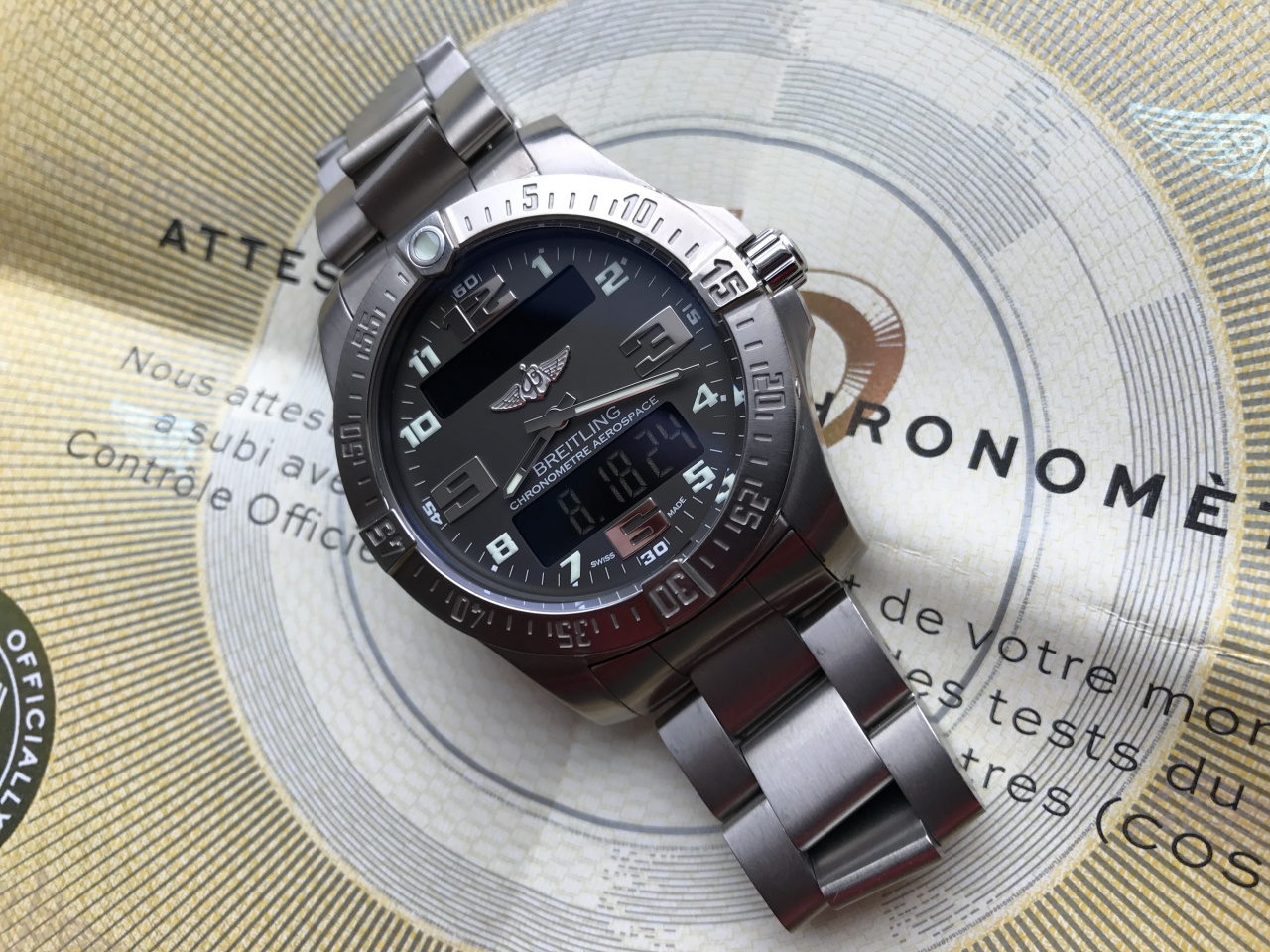 Уважаемые форумчане, в продаже новейшая интерпретация легендарной модели. Электронный многофункциональный хронограф с матовым корпусом из титана воплощает мощный, динамичный и технический стиль. Он отличается особо простой и логичной системой управления. Достаточно просто повернуть, нажать или потянуть заводную головку, чтобы использовать весь набор функций. Aerospace Evo также имеет чрезвычайно эффективную и совместимую с очками ночного видения систему подсветки дисплея.
