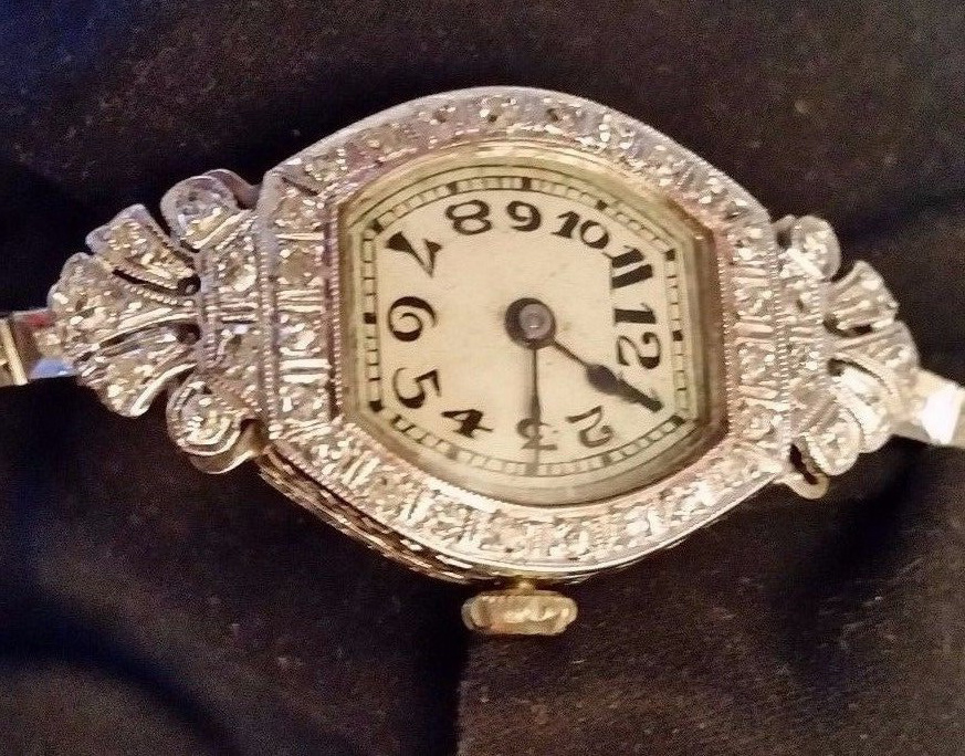 Beautiful Swiss, "Pierpont" Deco Lady's Solid 14k Gold Diamond Wristwatch.
