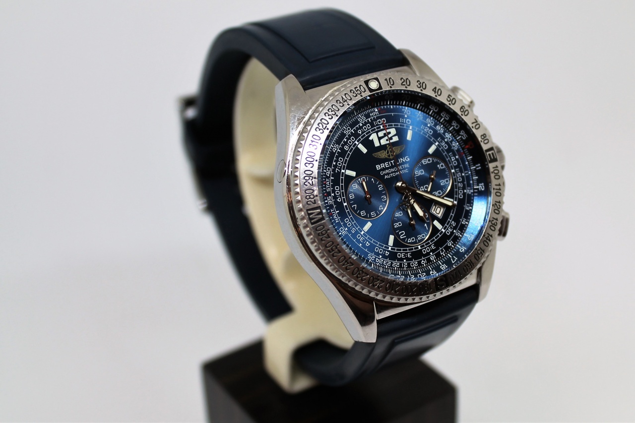 Часы с редчайшим красивейшим синим циферблатом. Синий оригинальный каучук в приличном состоянии. Незначительные следы носки. В комплекте отдам оригинальную коробку Брайтлинг нового образца. При желании могу доукомплектовать оригинальным ремнем Брайтлинг из аллигатора соотв. с оригинальной пряжкой(конечно исходя из окончательного прайса). Также обсуждается возможность полировки и обслуживания пред и после продажные.