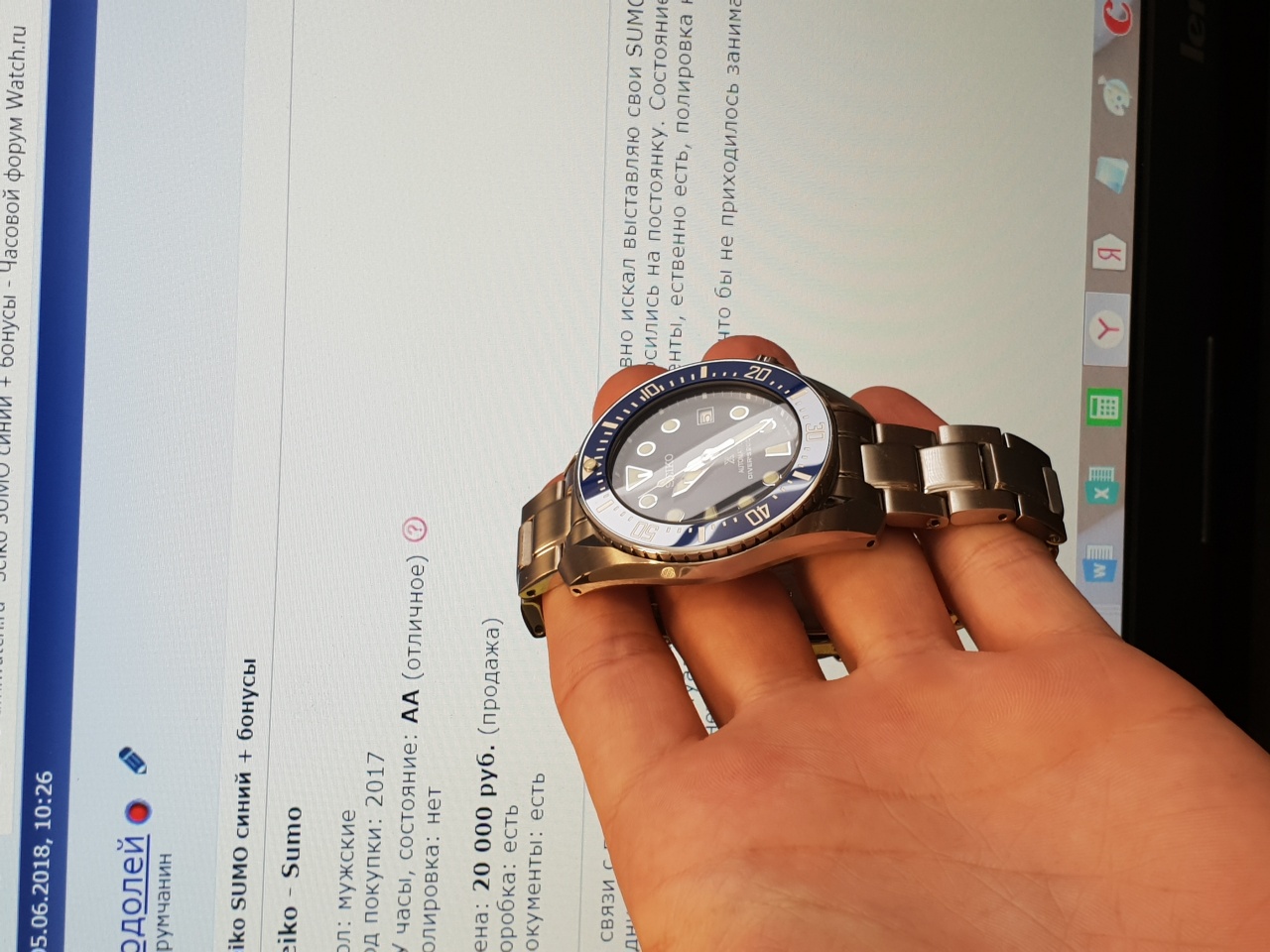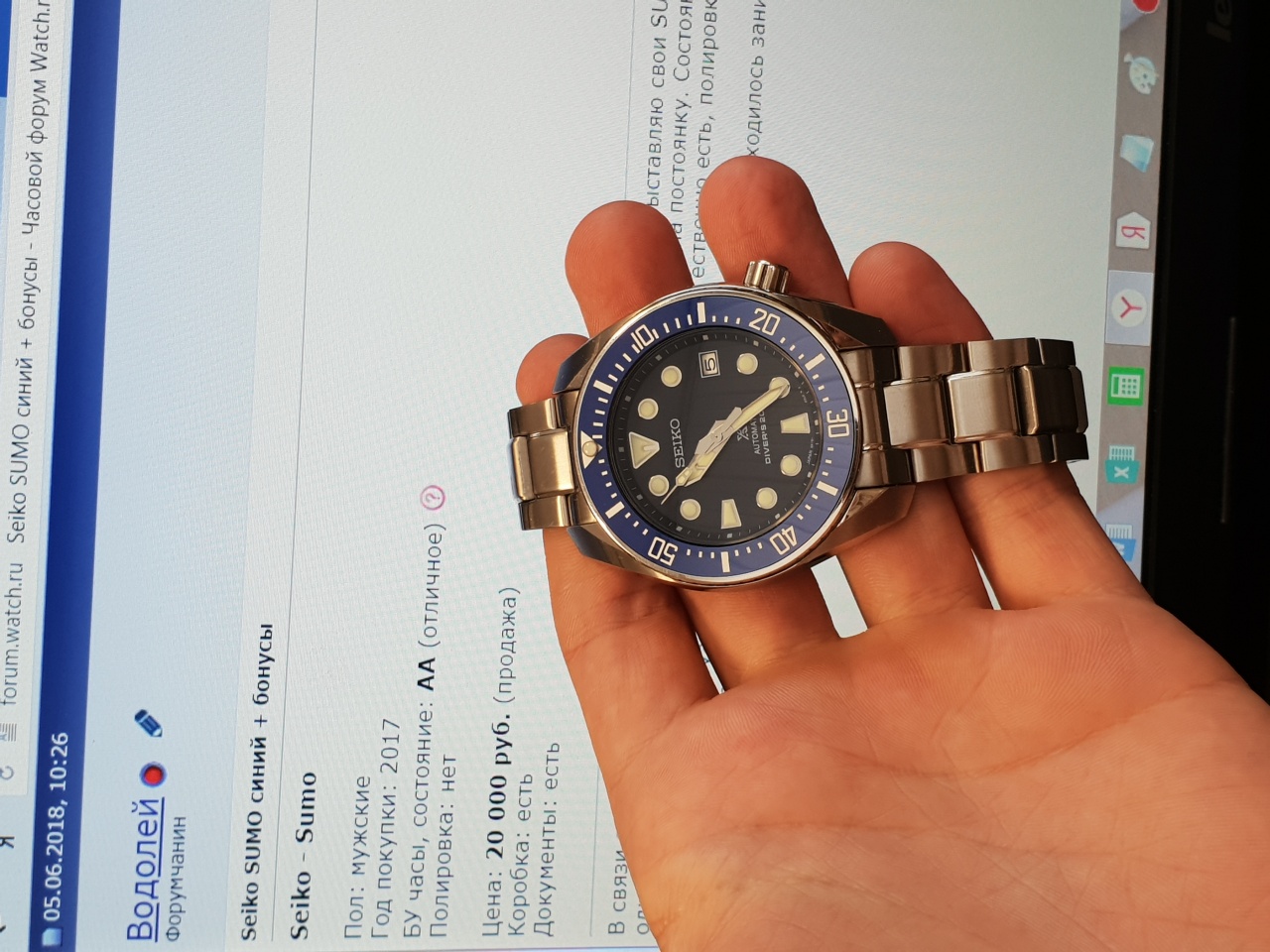 В связи с появление на форуме хотелки которую давно искал выставляю свои SUMO на продажу. В представлении часы не нуждаются. Куплены в марте-апреле 2017. Часы не одни в коллекции постоянно комбинировались не носились на постоянку. Состояние отличное. Есть тюниг - установлен безель из керамики (родной отдам тоже) дополнительно - есть ремни нато, их отдам бонусом, коробка, документы, ественно есть, полировка не требуется, очень бережная носка. Цена 20.000. Кому интересно - обращайтесь. предложение будет актуально пока не куплю другие.