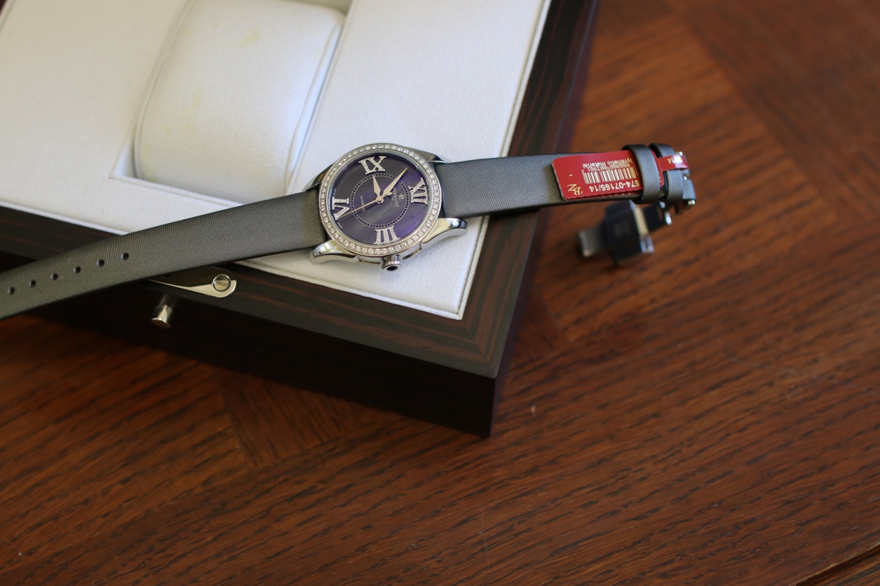 Прекрасные женские швейцарские часы 54 бриллианта , общий вес 0.88 карат , так же бриллианты на циферблате ! Часы после полировки и репассажа + прекрасный серый сатиновый ремешок !