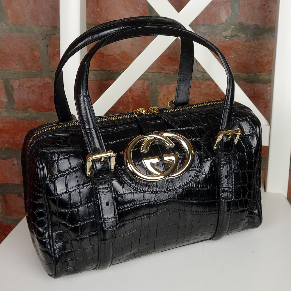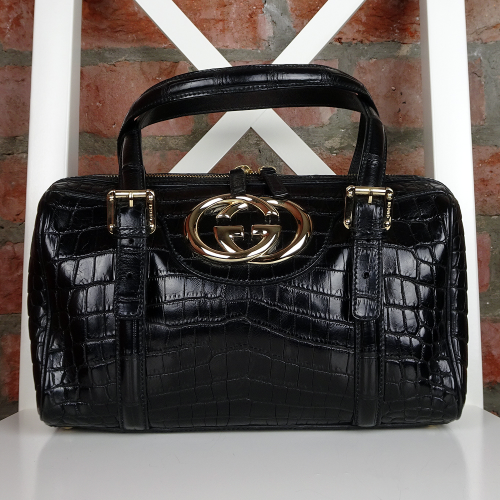 Женская сумка Gucci из черного аллигатора.