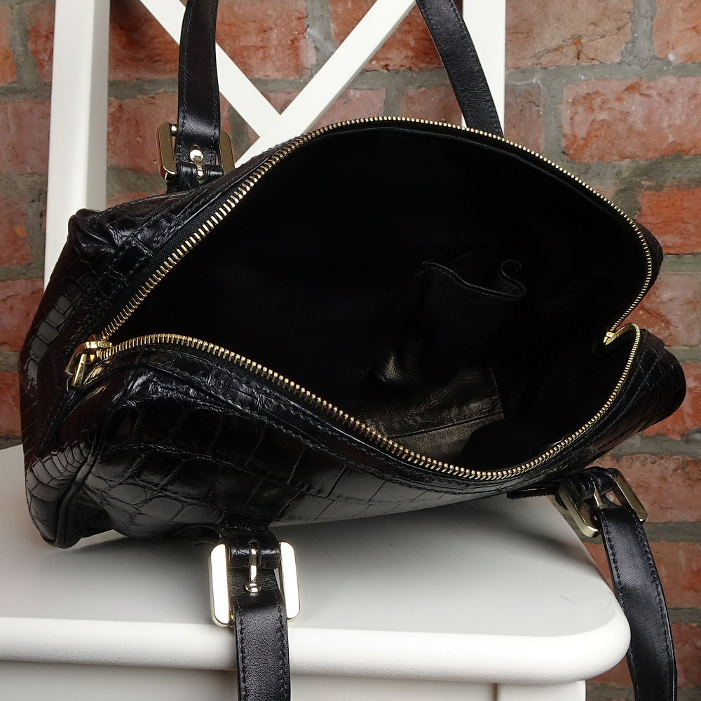 Сочетание черного полу-матового аллигатора и светлого золота - символ роскоши и вневременная классика.