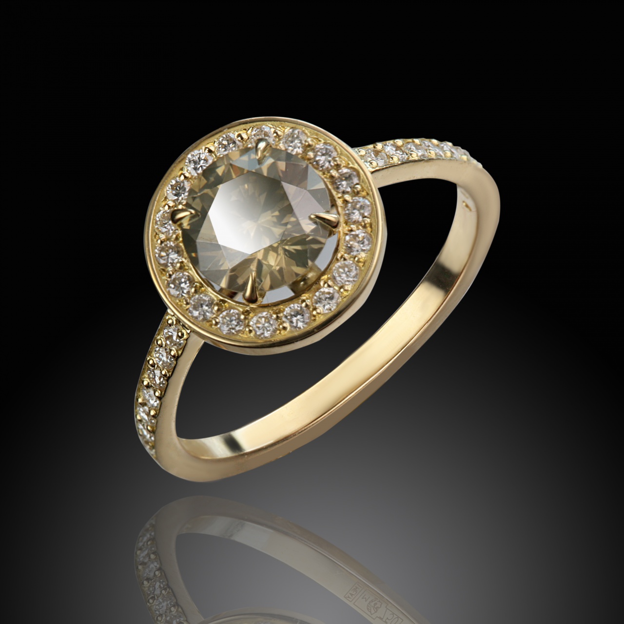 Центральный бриллиант весом 1,08 карат, цвет Natural Fancy Vivid Brown, чистота VS2 (5)