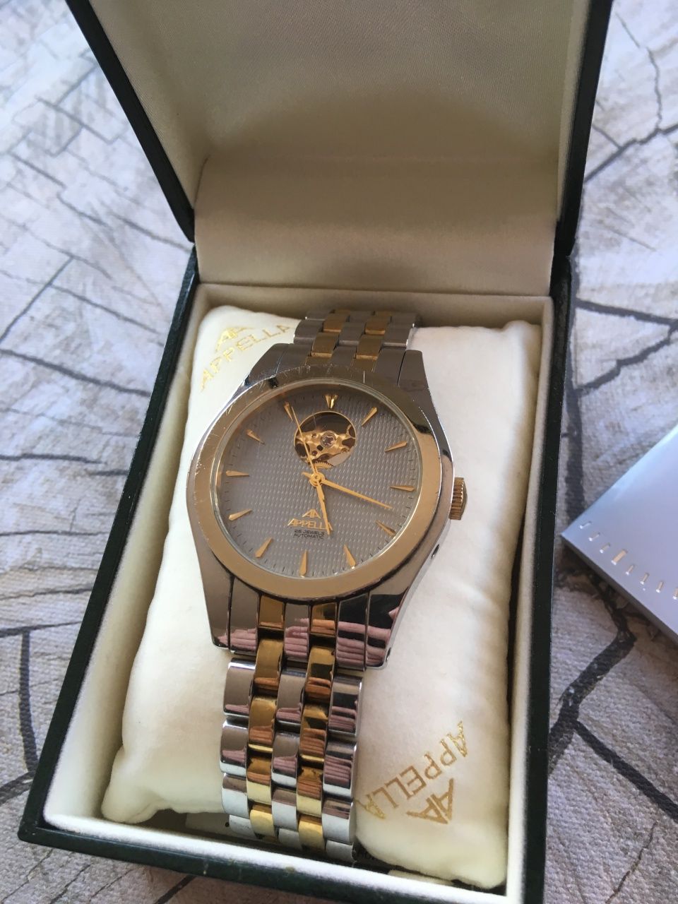 На часах есть мелкие царапины но думаю при полировке устранимые! Полный комплект: шкатулка, документы, доп.звенья.