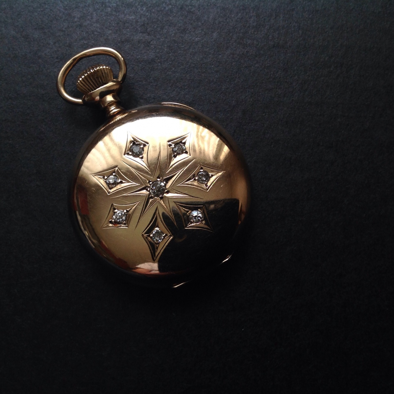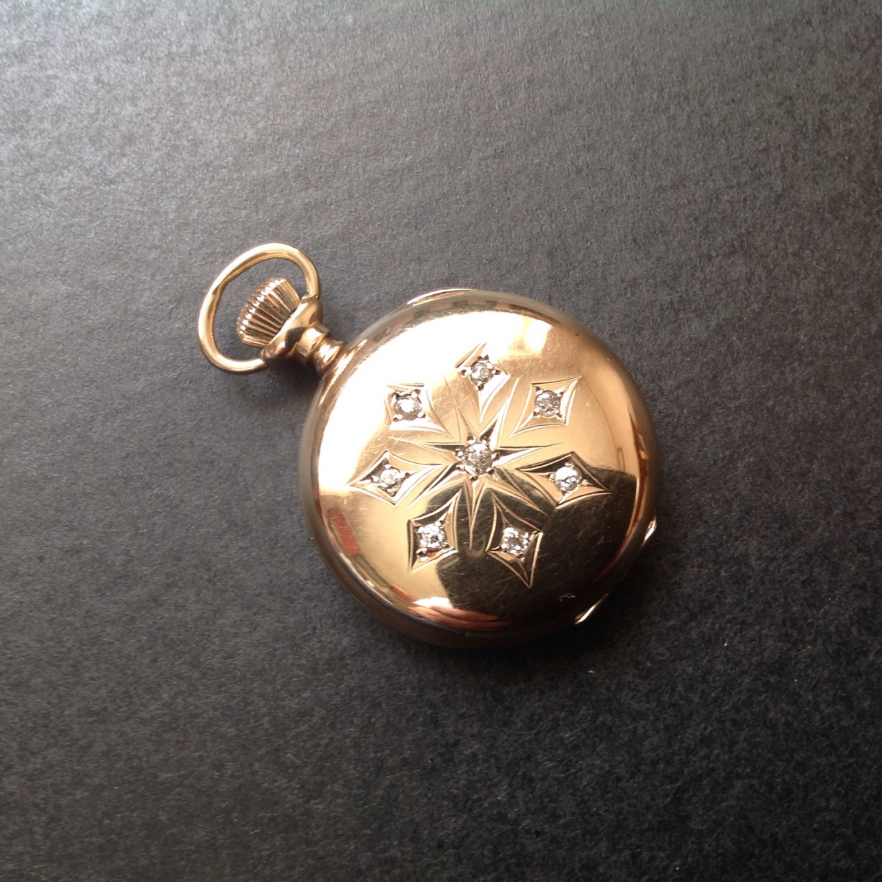 Антикварные, золотые, женские, кулонные, жилеточные часы с бриллиантами