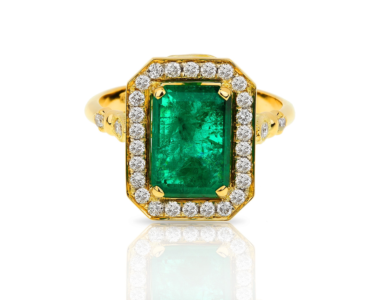 | золотое кольцо, кольцо с изумрудом 2.72ct, малышевский изумруд |