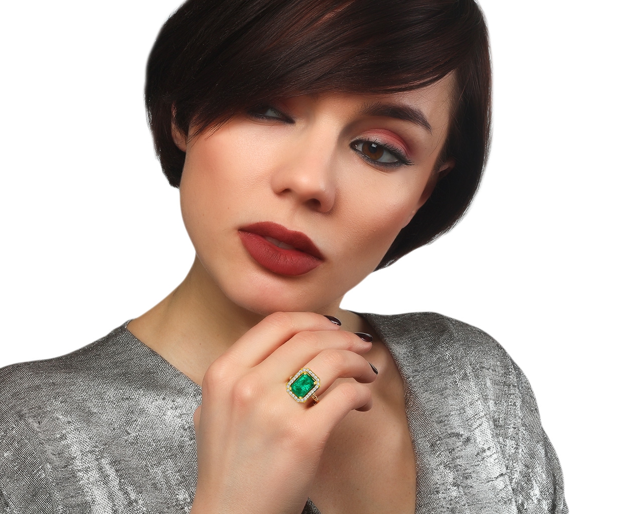 Бриллиантовое кольцо с уральским изумрудом 2.72ct