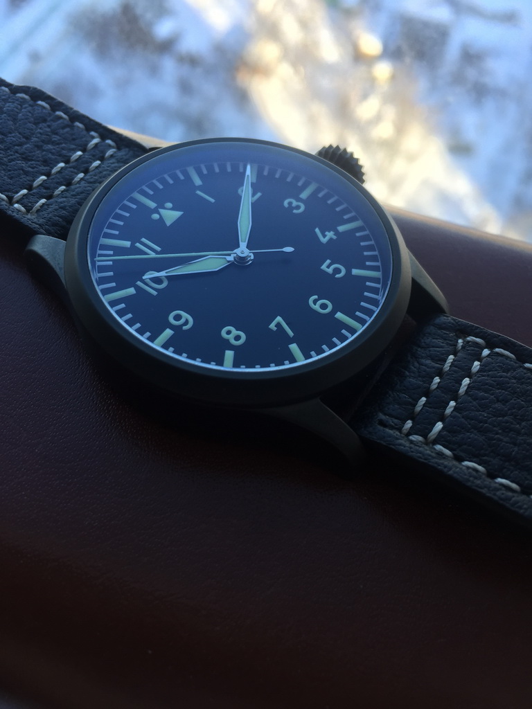 Часы новые, кастомная сборка - на фабрике по моей просьбе установлены оригинальные родированные стрелки для повышения считываемости времени.