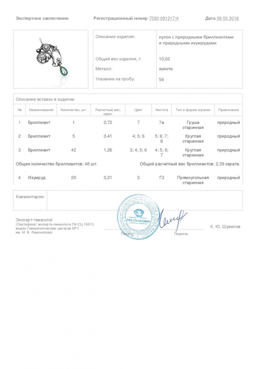 Старинная золотая подвеска с бриллиантами 2.39ct