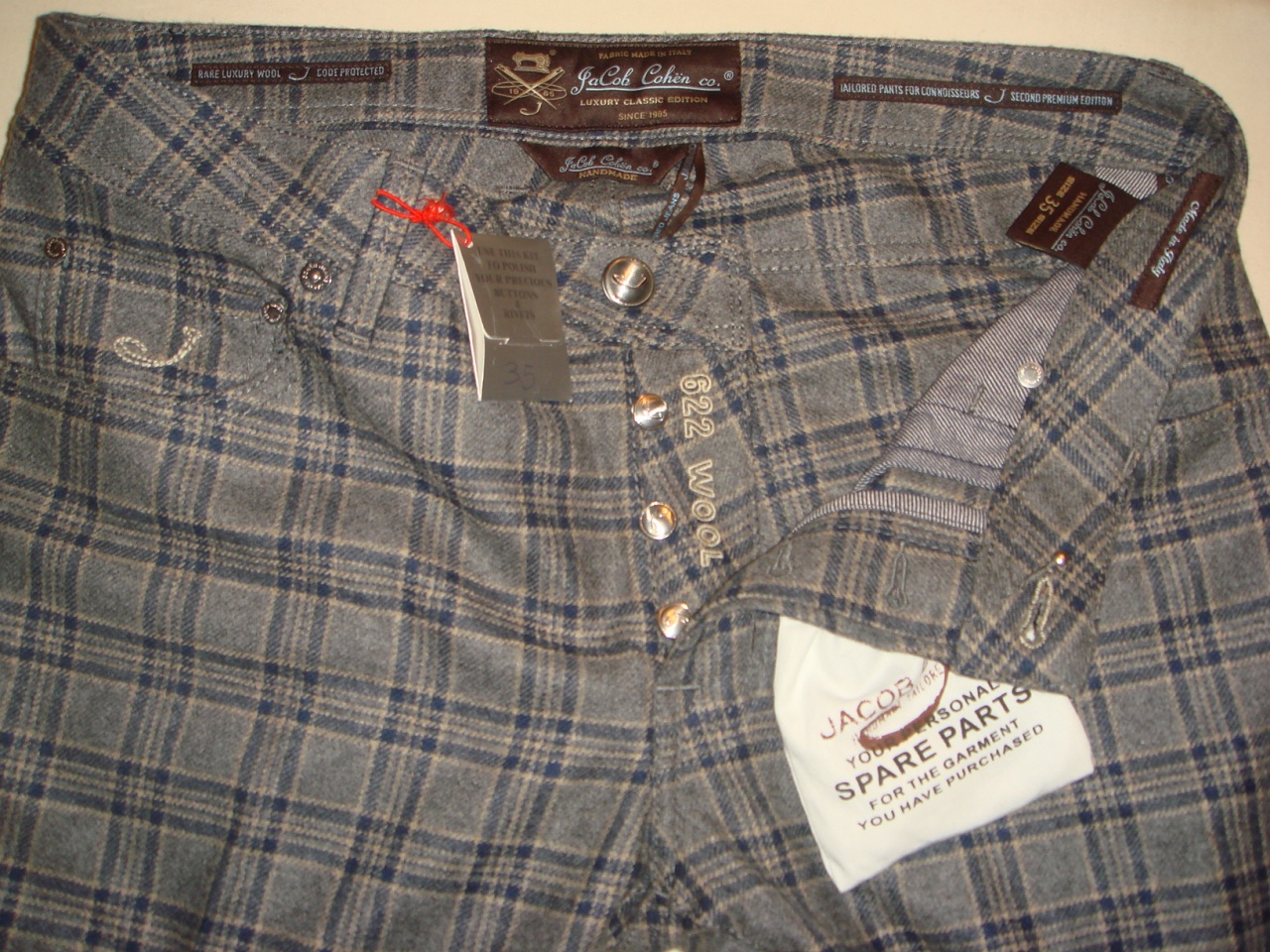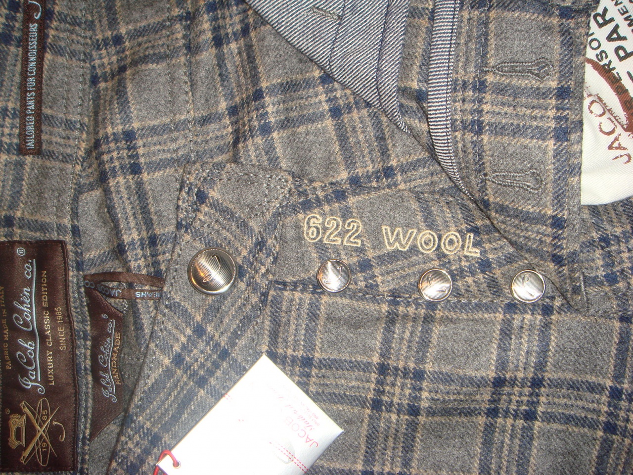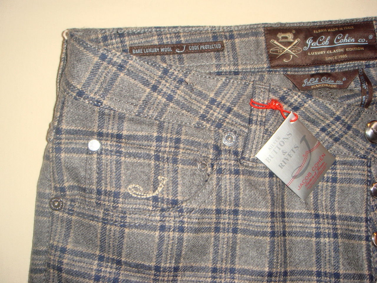 Продаются новые мужские шерстяные брюки джинсового кроя ручной работы итальянского бренда JACOB COHEN, превосходного исполнения, фланель, цвет серый в шотландскую клетку, логотип, TYPE 622 прямого кроя, класcическая посадка на талии, застёгивается на пуговицы посеребренные с логотипом бренда, состав: 100% из шерсти virgin wool (волокна шерсти девственной овцы мериноса), все бирки прилагаются , гарантированный 100% оригинал, размер 35 , производство Италия Бренд по достоинству оценят любители одежды класса де люкс, изделие смотрится дорого и стильно, отличное сочетание цена-качество.