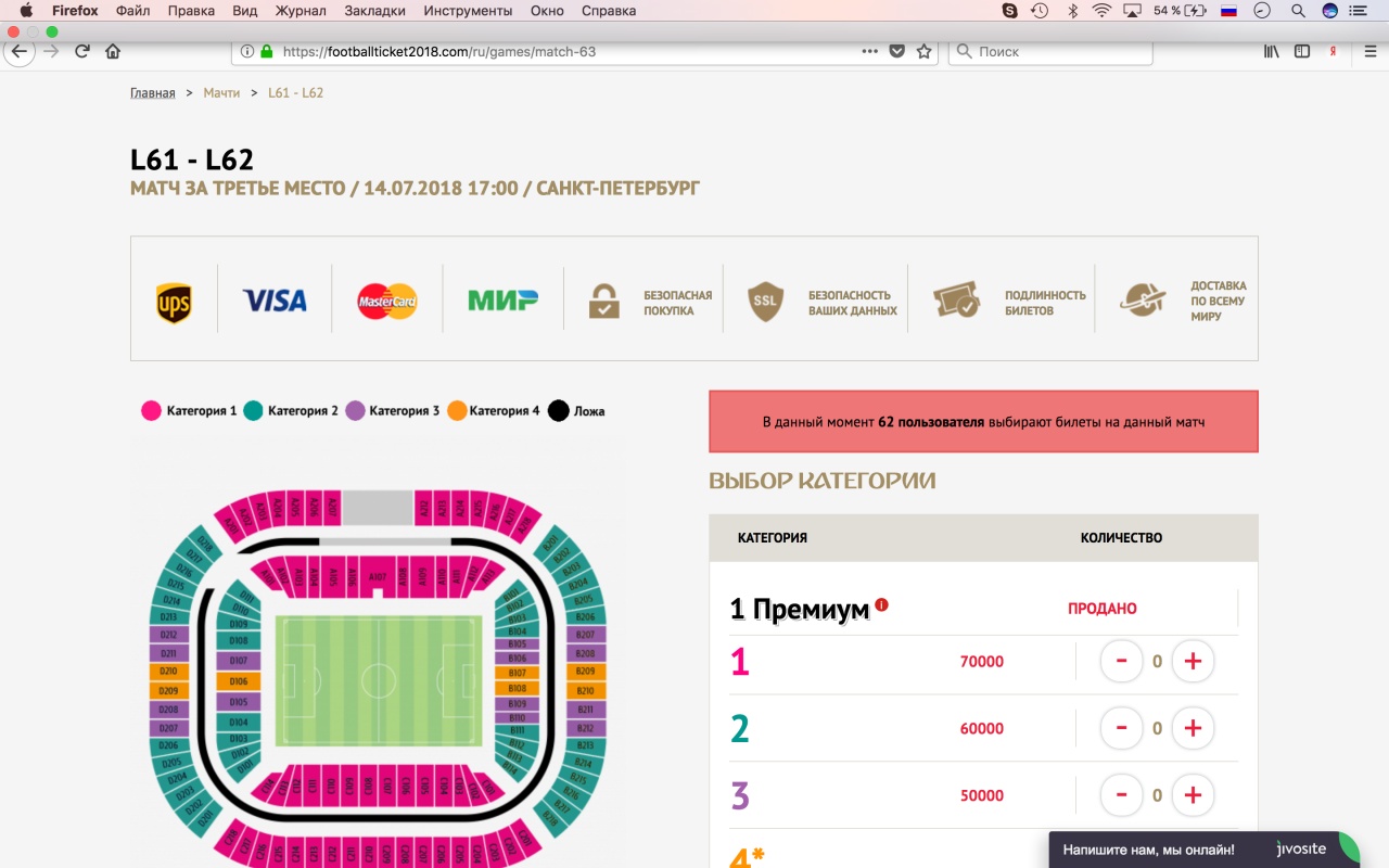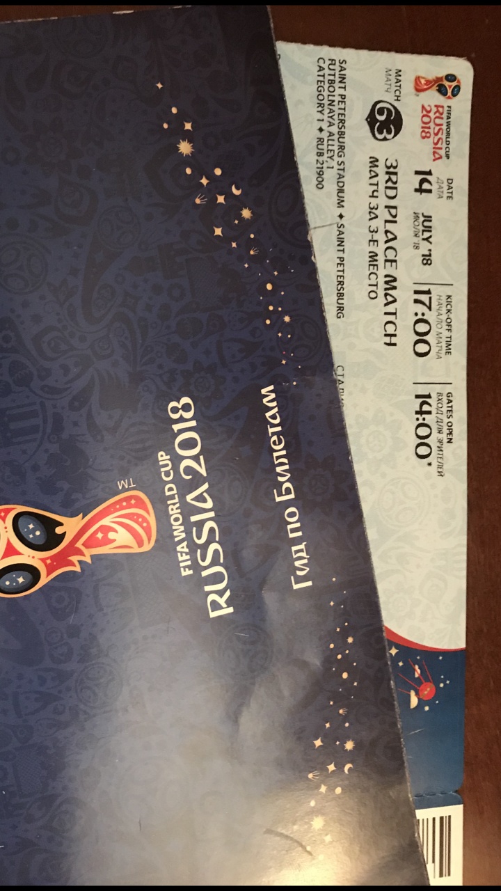 Билет на матч за 3-е место ЧМ по футболу, 14 июля в Санкт-Петербурге