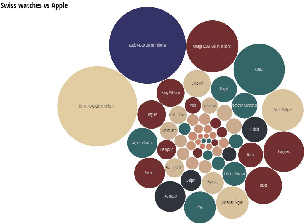 На предпоследней презентации Тим Кук упомянул, что Apple продаёт больше часов, чем вся швейцарская индустрия вместе взятая. Разумеется, речь идёт о штуках.