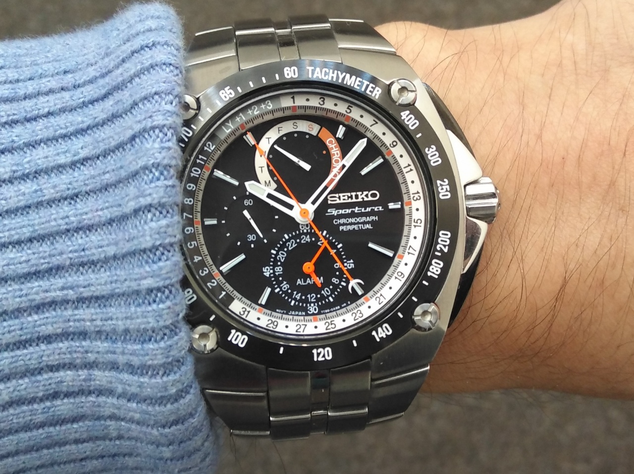 Пример хронографа, чьи кнопки и ЗГ - плоховато совместимы с длинными рукавами и узкими манжетами: