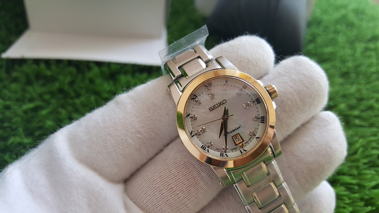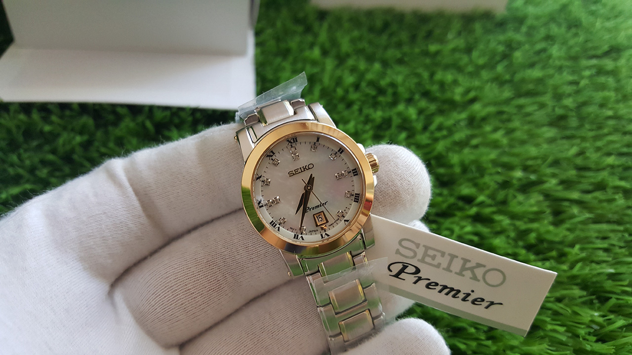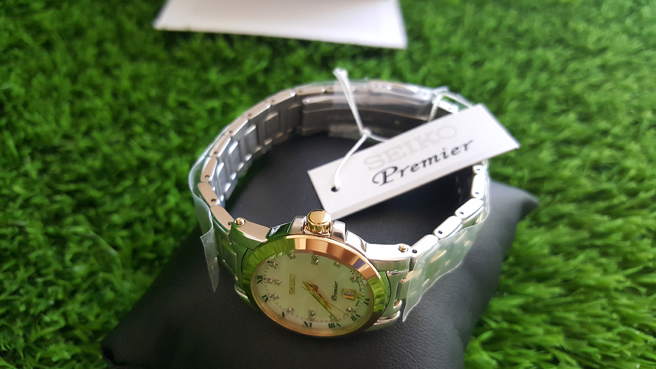 Premier. Заводная головка с защитой. Браслет с раскладывающейся застежкой. Перламутровый белый циферблат.