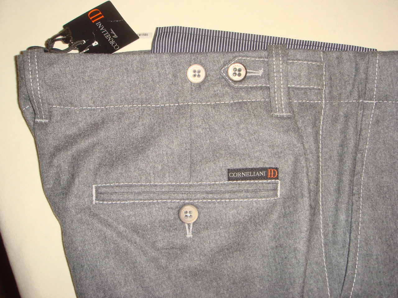 Продаются новые повседневные мужские брюки итальянского бренда CORNELIANI ID превосходного исполнения, фланель, цвет серый, логотип, классическая посадка на талии, regular fit , молния и пуговицы, множество карманов, классические брюки, ширина низа брючин 19 см, состав: 100% натуральная шерсть, все бирки и запасная фурнитура прилагаются , гарантированный 100% оригинал, размер 52, производство Италия
