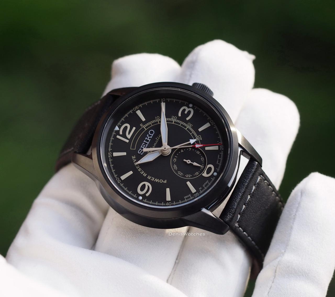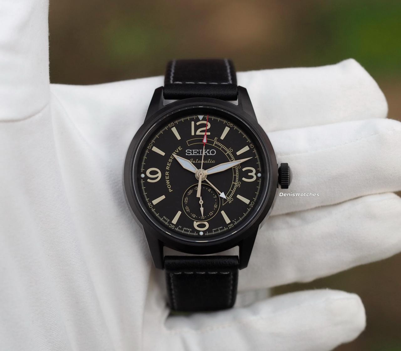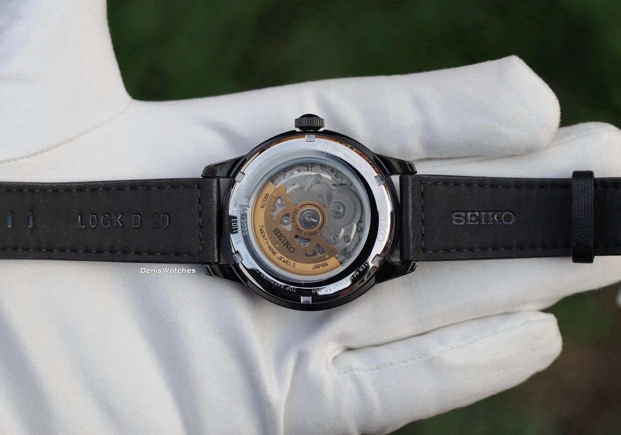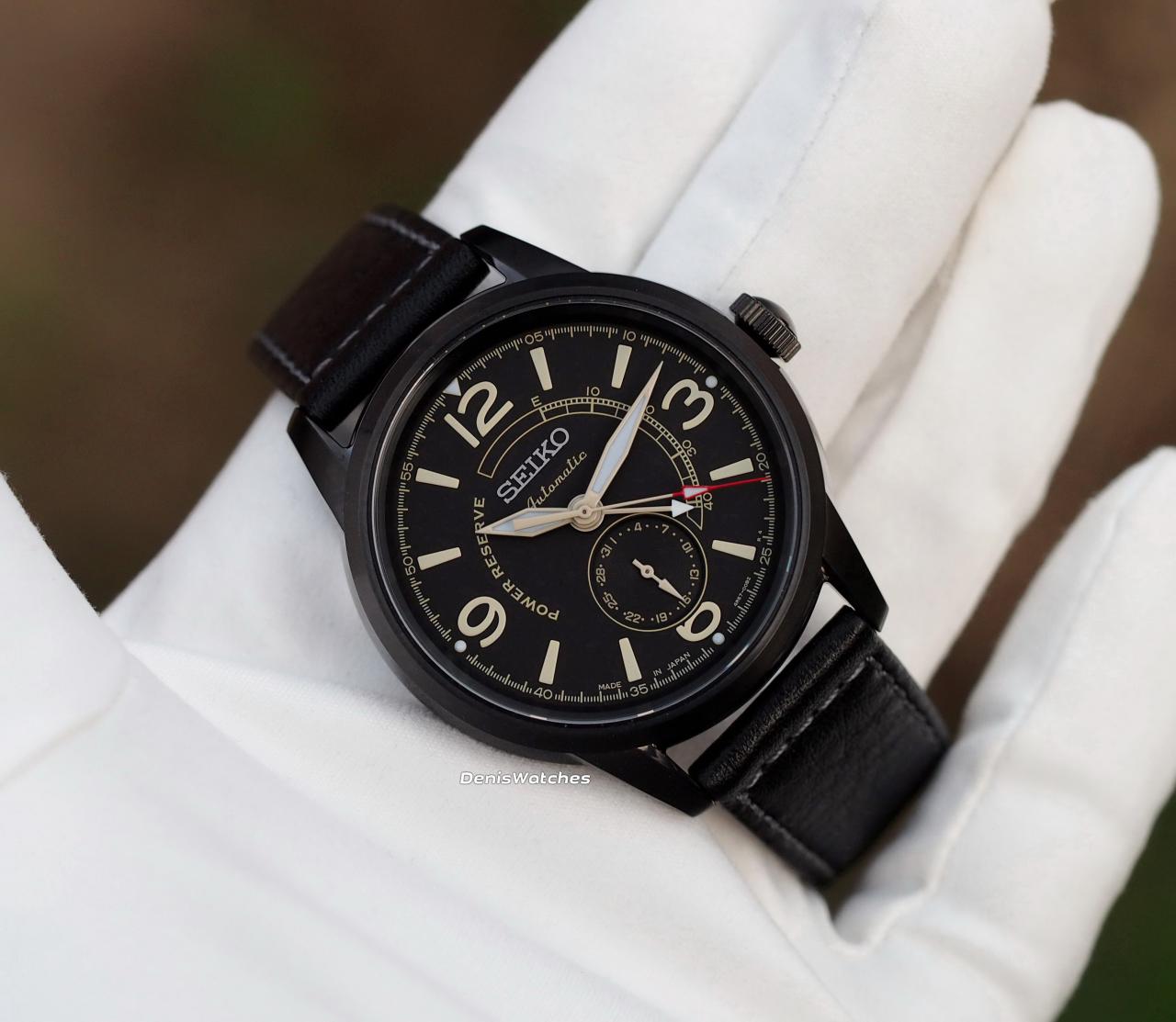 Черный циферблат с вертикальным сатинированием, накладное лого Seiko, объемные цифры и метки