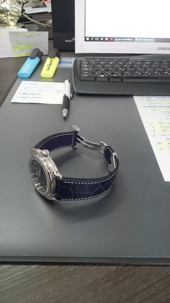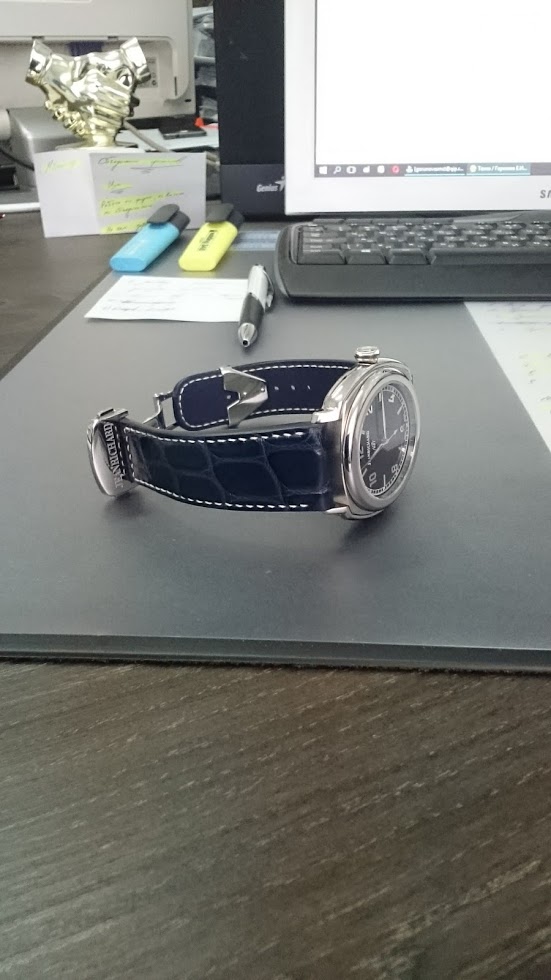 Продам замечательные, очень красивые часы JeanRichard коллекция 1681. Часы покупал новые в пленках в мае 2017 года. Так же заказал у местного мастера (Aprell) ремешок, синий крокодил, страус остался в отличном состоянии, тоже прилагаю бонусом. Часы как новые, но конечно есть маленькие риски, легко убрать полировкой. Поставил АА, так как менял ремешок, синий мне больше нравиться. Последние несколько месяцев лежат в шкатулке, так как постоянно ношу другие часы. Достаю раз в несколько недель, что бы просто завести. Очень долгий запас хода и яркий люм на стрелках. Секундная стрелка вообще красота! Часы в Москве. Конечно полный комплект с документами, коробкой.